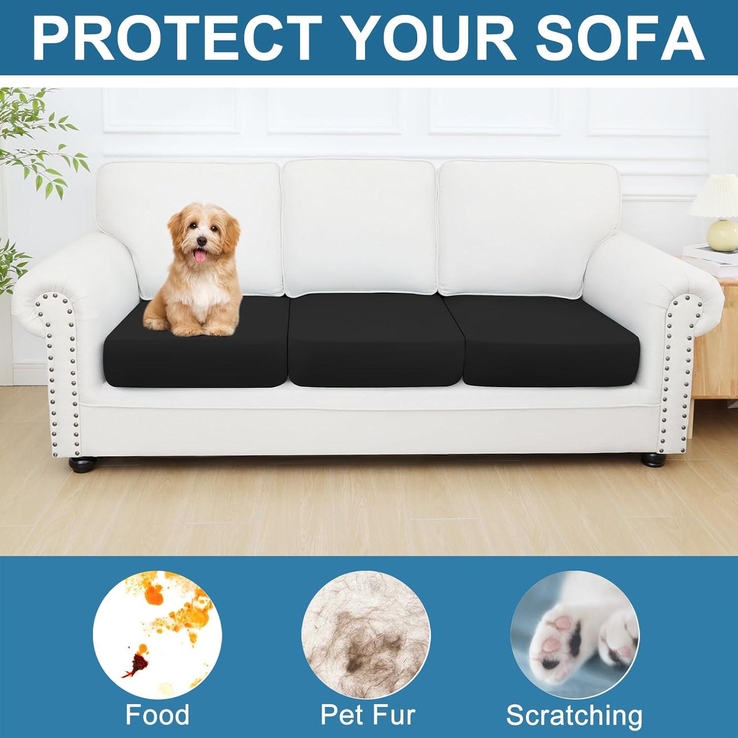 Smiry Printed Couch Cushion Covers, Stretch Soft Couch Covers for Sofa, Washable Non-Slip Sofa Slipcover Furniture Protector for Indoor and Outdoor (3 Pack, Dark Grey)(Black)