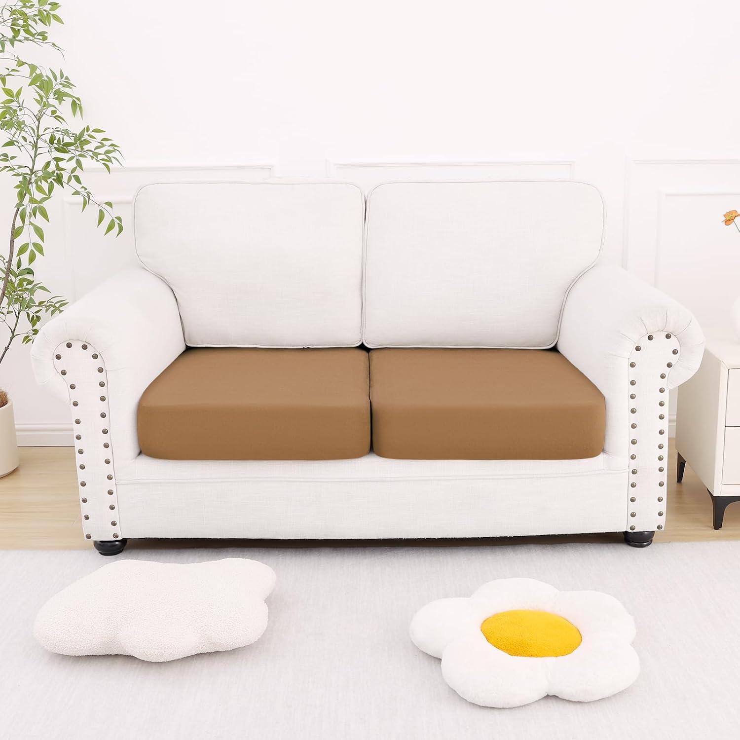 [Super Elasticity & Soft] Smiry couch cushion covers are made of 92% polyester and 8% spandex. Soft, comfortable, sturdy and anti-wrinkle. High stretchy couch cover that recovers quickly allow to fit many shapes of sofa cushions very well
