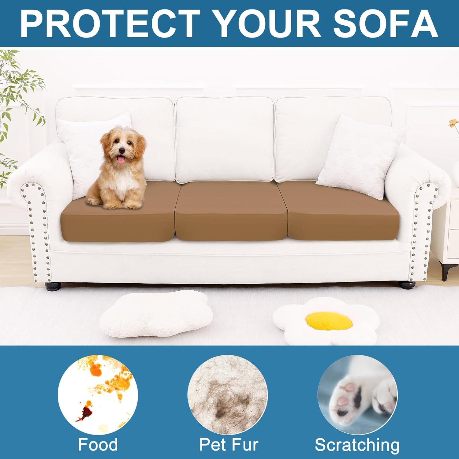 Smiry Printed Couch Cushion Covers, Stretch Soft Couch Covers for Sofa, Washable Non-Slip Sofa Slipcover Furniture Protector for Indoor and Outdoor (3 Pack, Dark Grey)(Camel)