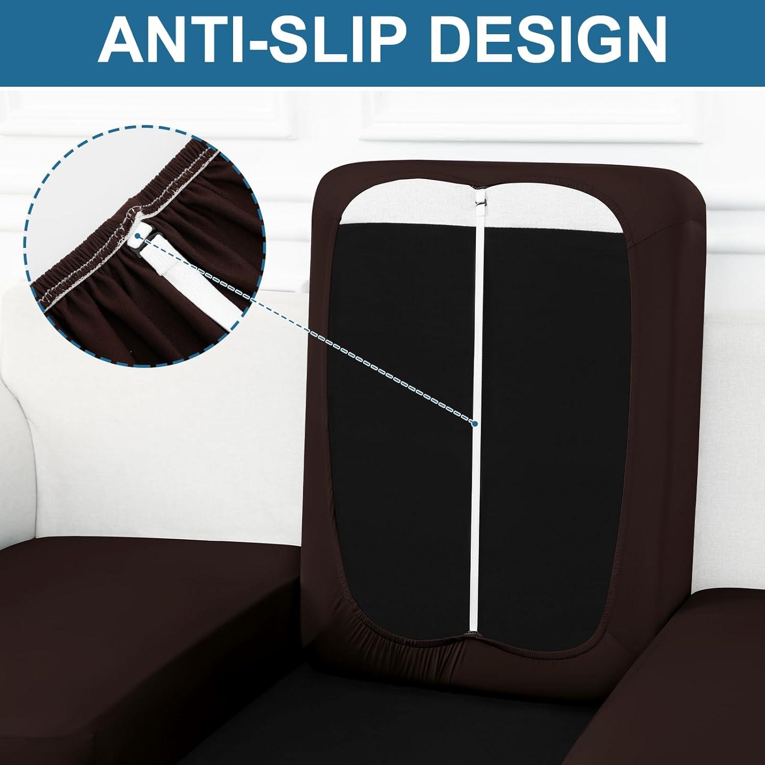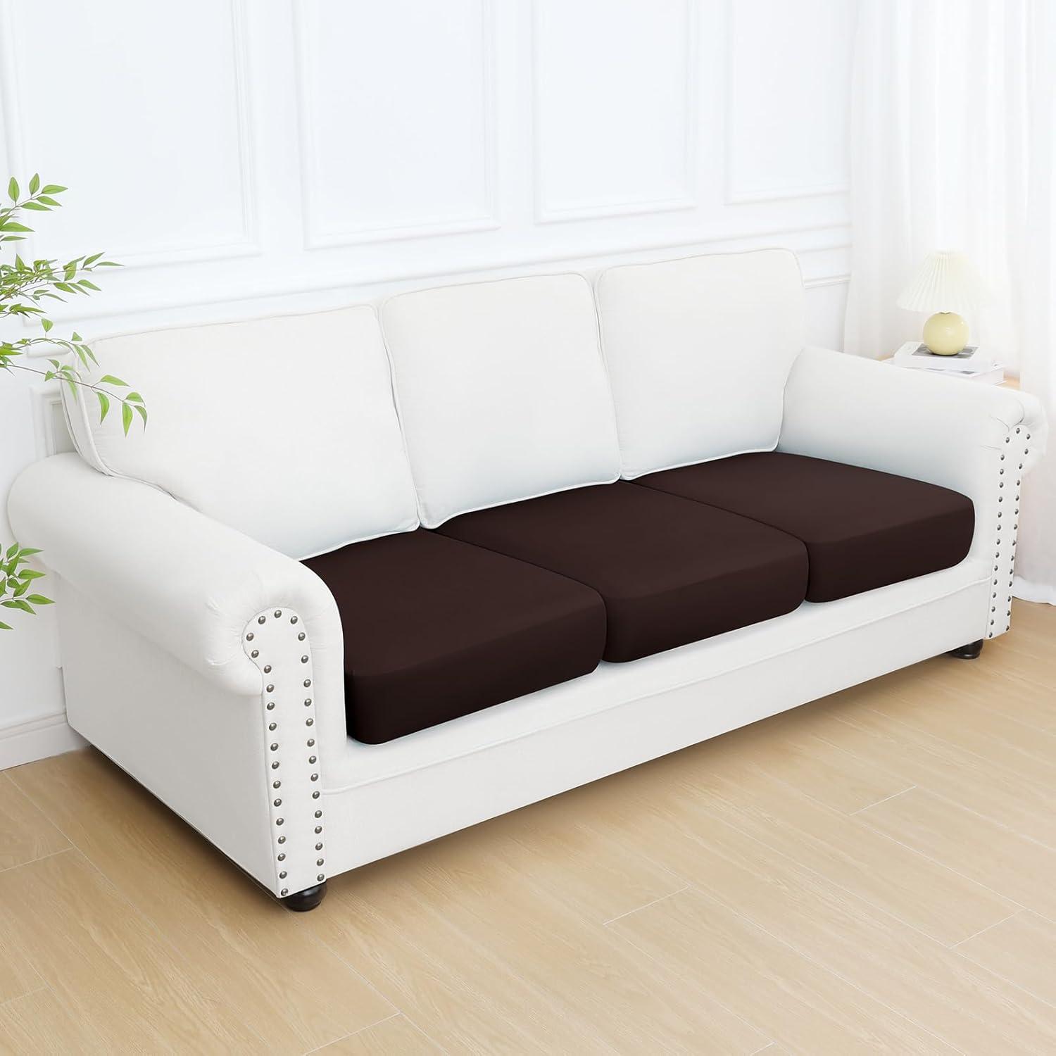 Smiry Printed Couch Cushion Covers, Stretch Soft Couch Covers for Sofa, Washable Non-Slip Sofa Slipcover Furniture Protector for Indoor and Outdoor (3 Pack, Dark Grey)(Chocolate)