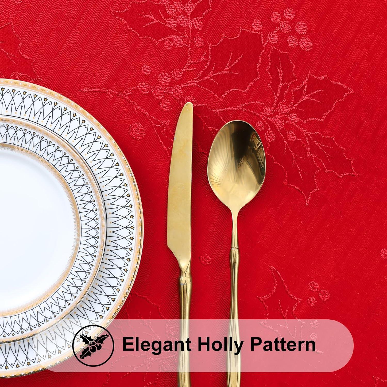 [Exquisite Christmas Decor] Featuring a jacquard damask design with holly patterns, this red tablecloth is a must-have for your holiday-themed gatherings.