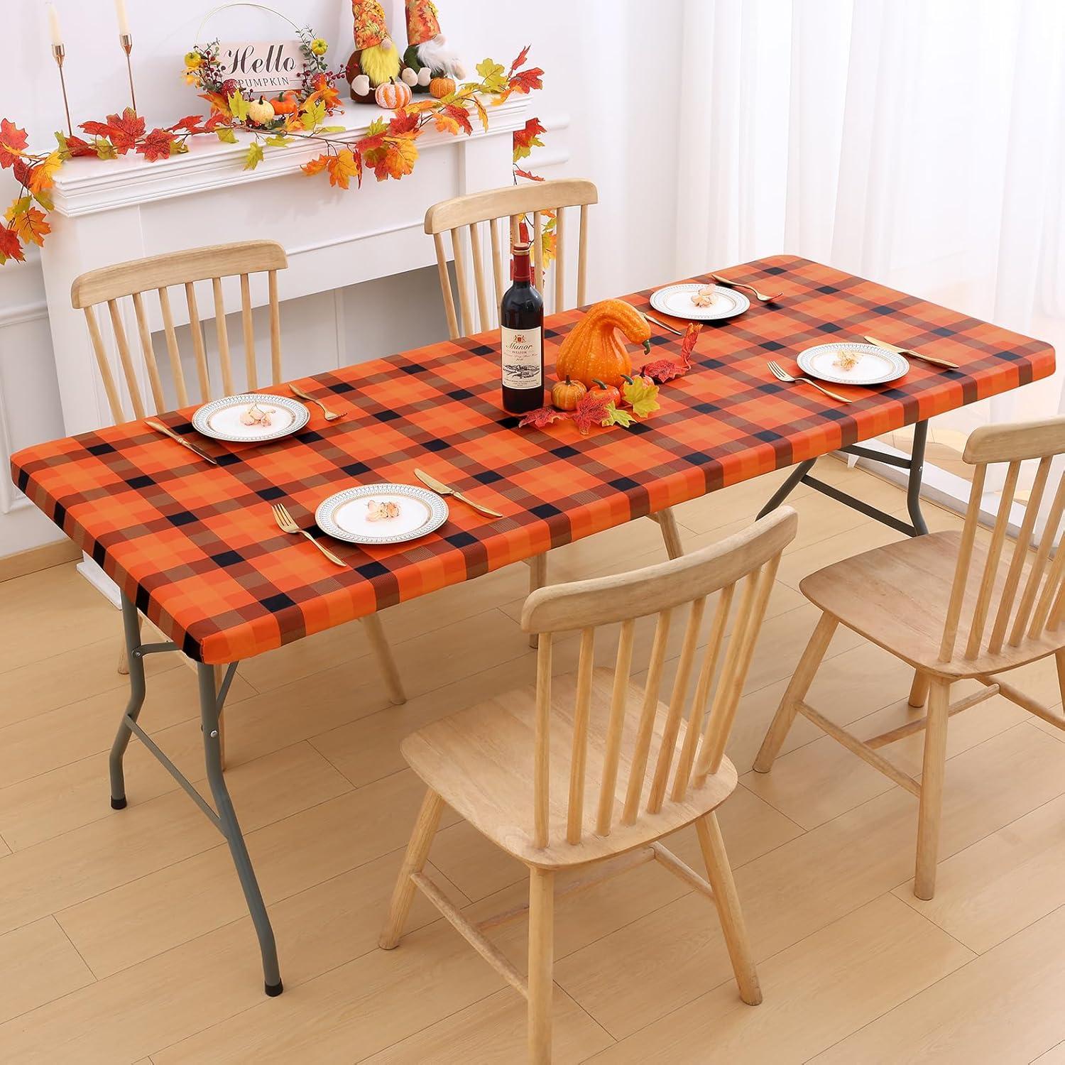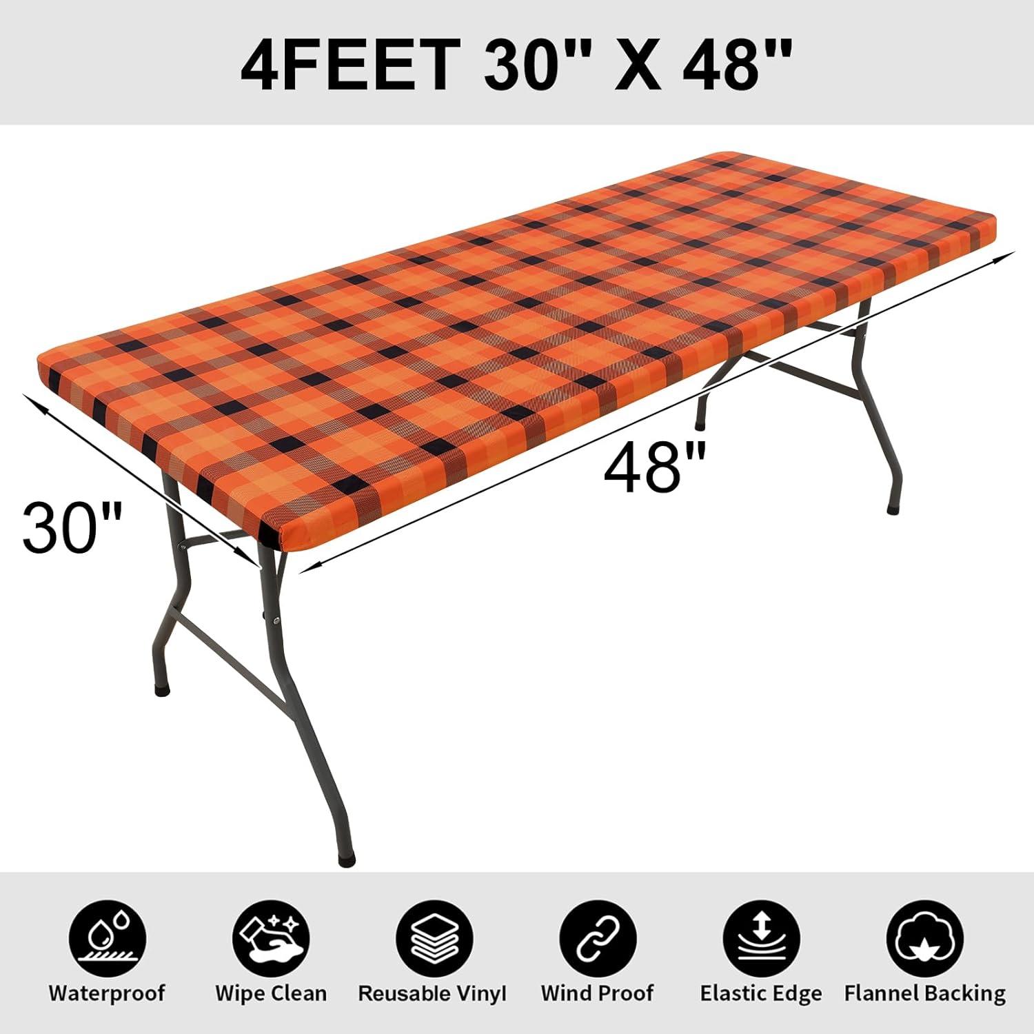 [Applicable Size] Our fitted tablecloth measures 30 inch x 72 inch and features 1.57 inches thickness to completely snug fit table top. The 6 foot tablecloth suitable for 4 or 6 seats oblong fold tables. Please note confirm the size of your table before purchase