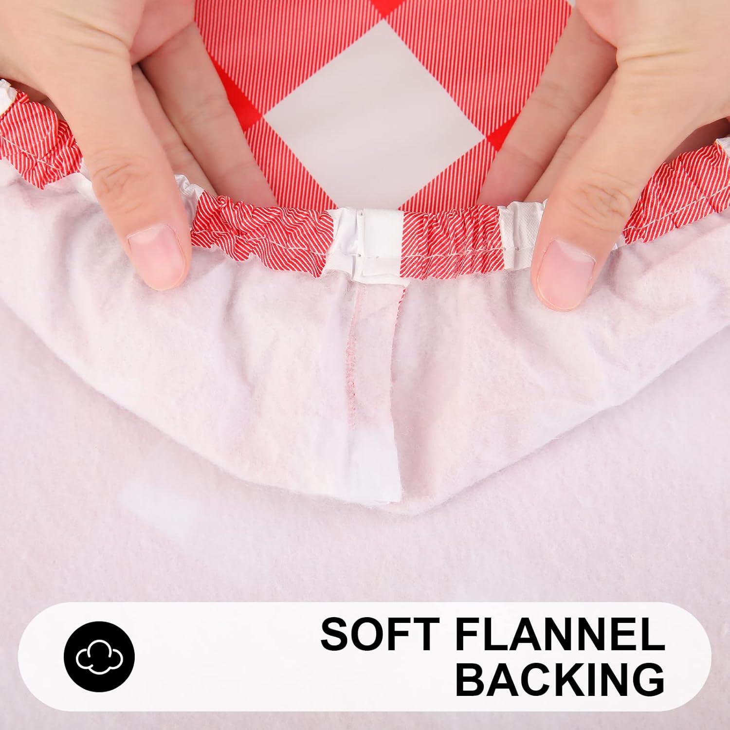 Smiry Rectangle Picnic Table Cloth, Elastic Waterproof Fitted Vinyl Tablecloths, Flannel Backed Buffalo Plaid Table Covers for Dining, Camping, Outdoor (Black and White, 30" x 72")(Red and White)