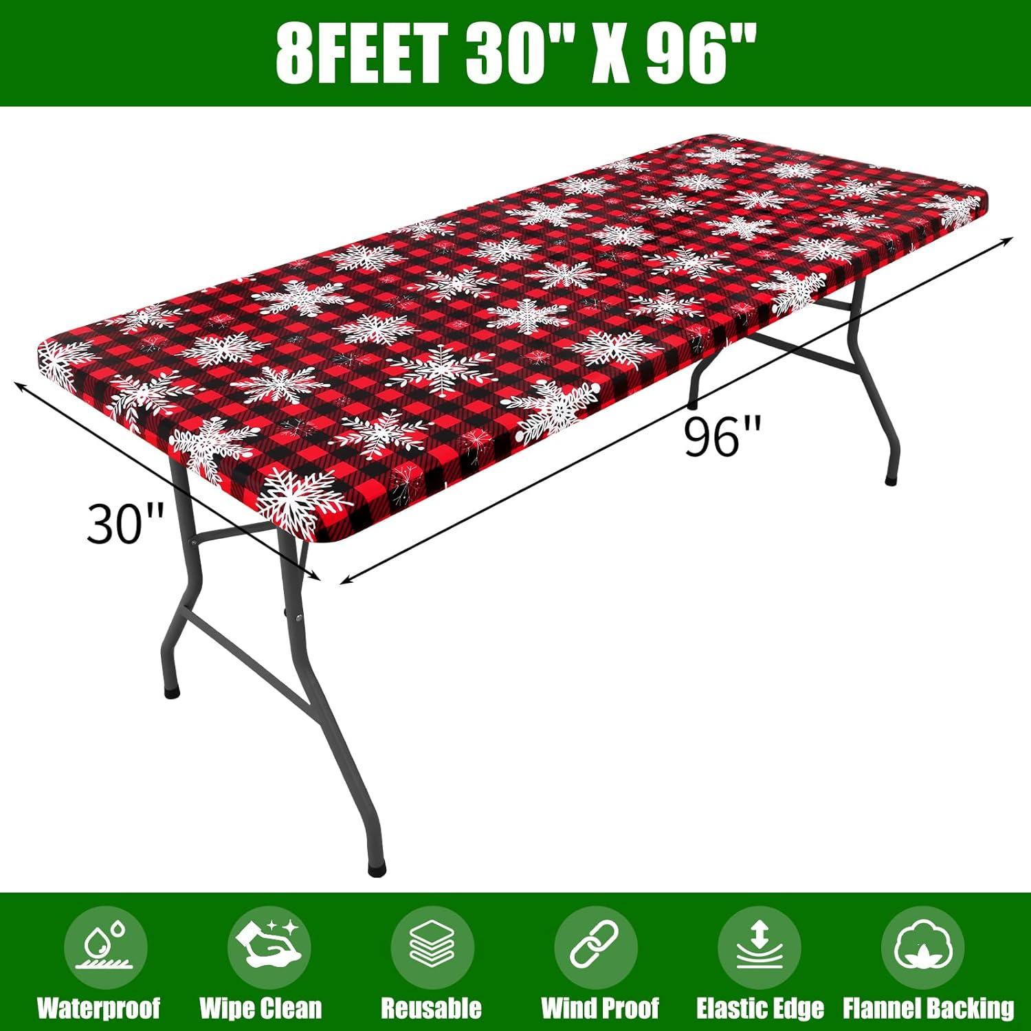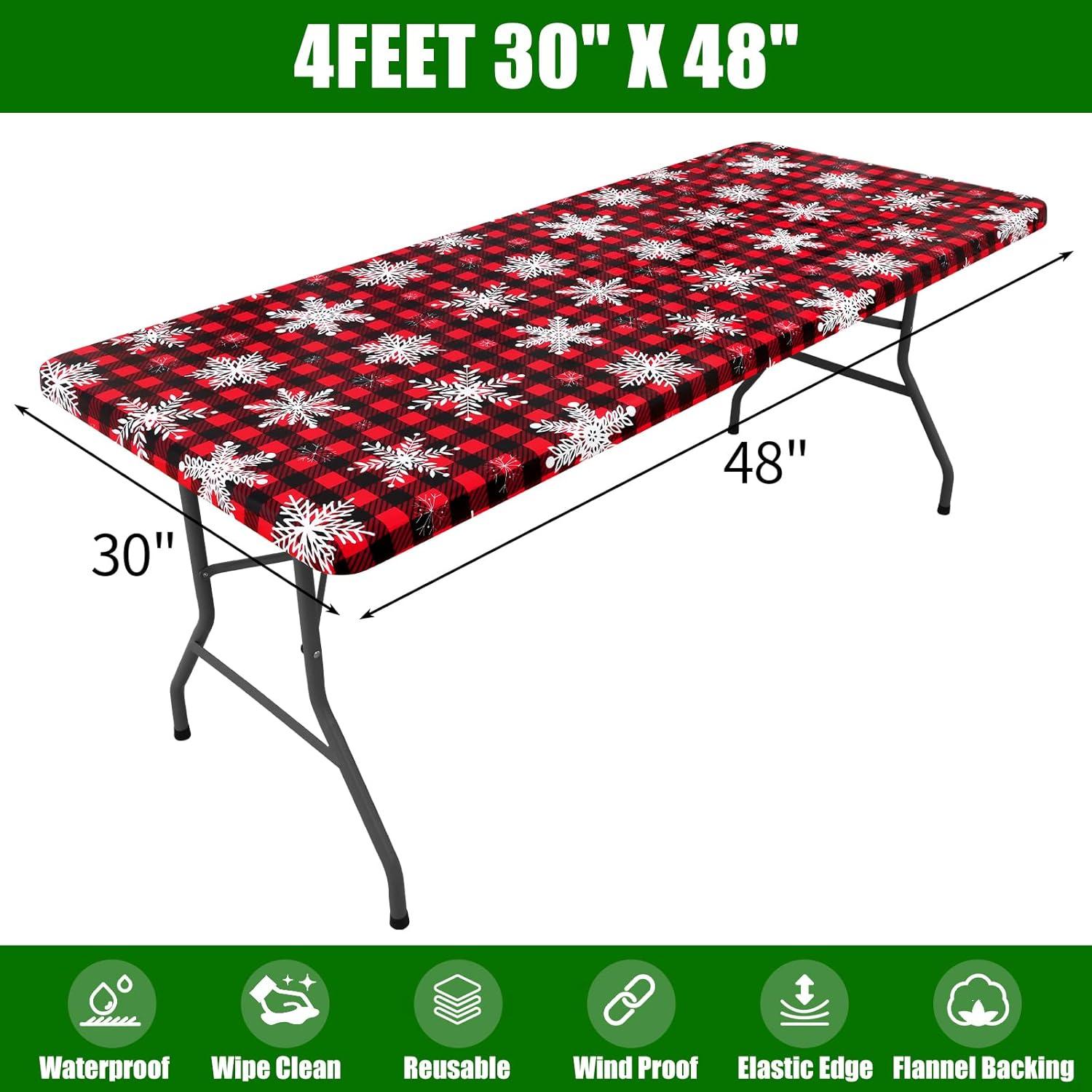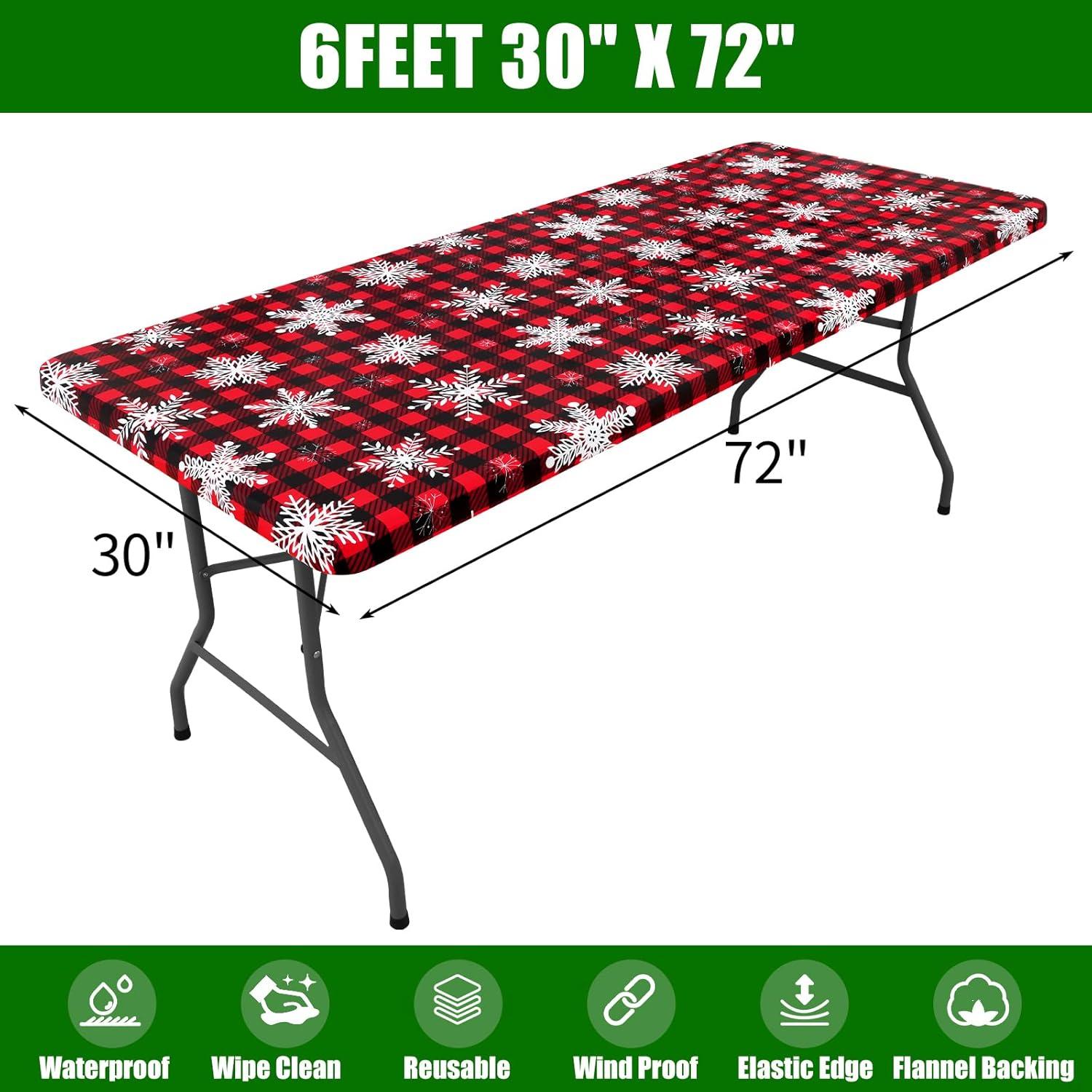 Smiry Rectangle Picnic Table Cloth, Waterproof Elastic Fitted Outdoor Tablecloths for 6 Foot Tables, Wipeable Flannel Backed Vinyl Table Cover for Camping, Dining and Indoor (30"x72", Grey)(Black & Red)