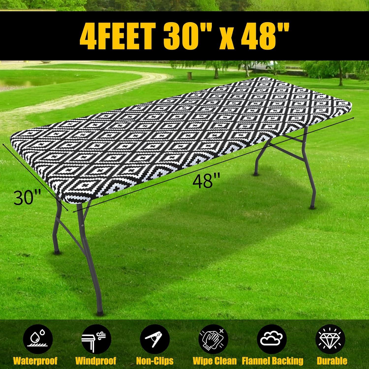 [Versatile & Reusable] Our fitted tablecloths with classic geometric patterns can give you a warm and bright dining environment, that seamlessly suits picnics, camping, patios, dining rooms, kitchens, parties, and banquets more.