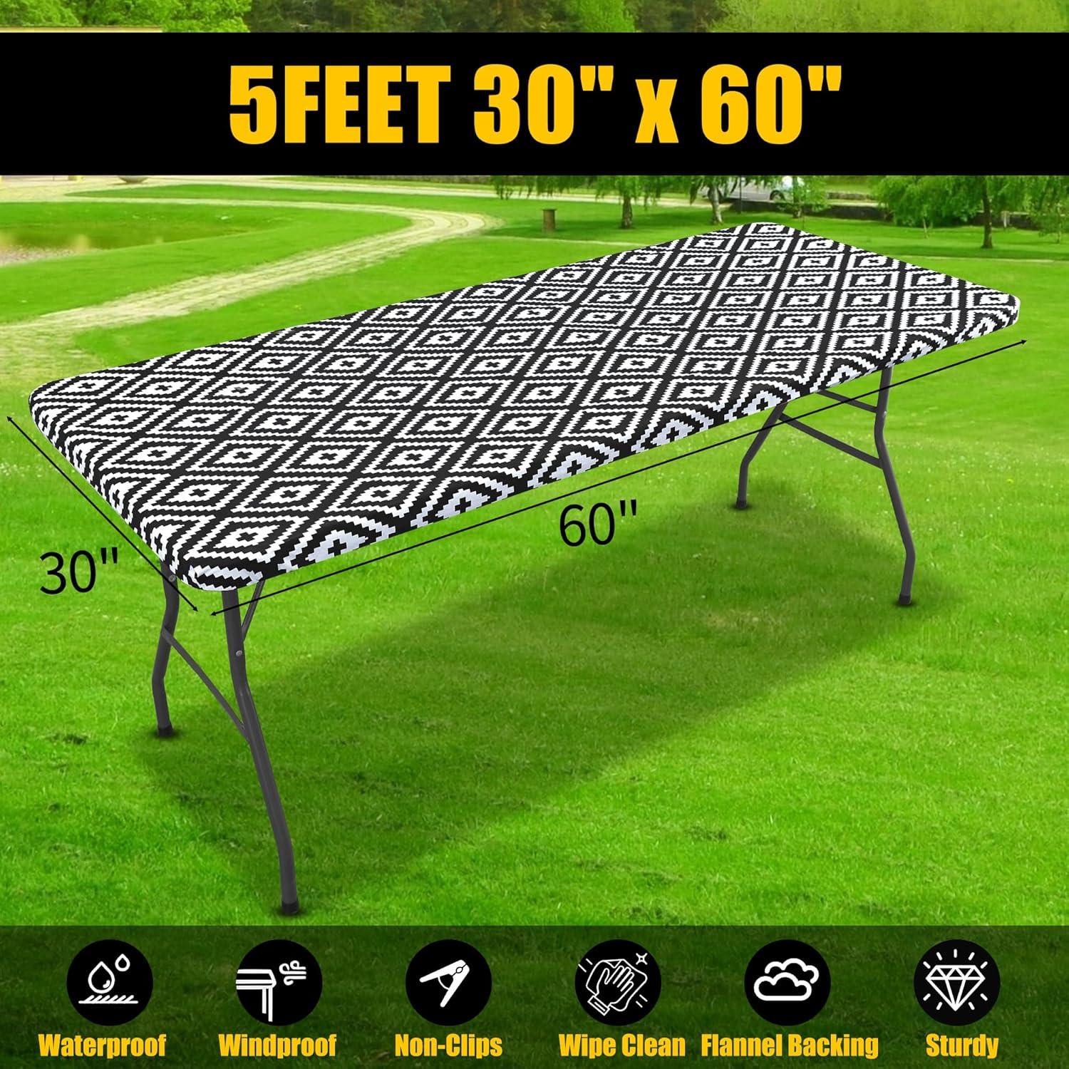 imageSmiry Rectangle Picnic Table Cloth Waterproof Elastic Fitted Outdoor Tablecloths for 6 Foot Tables Wipeable Flannel Backed Vinyl Table Cover for Camping Dining and Indoor 30quotx72quot GreyBlack