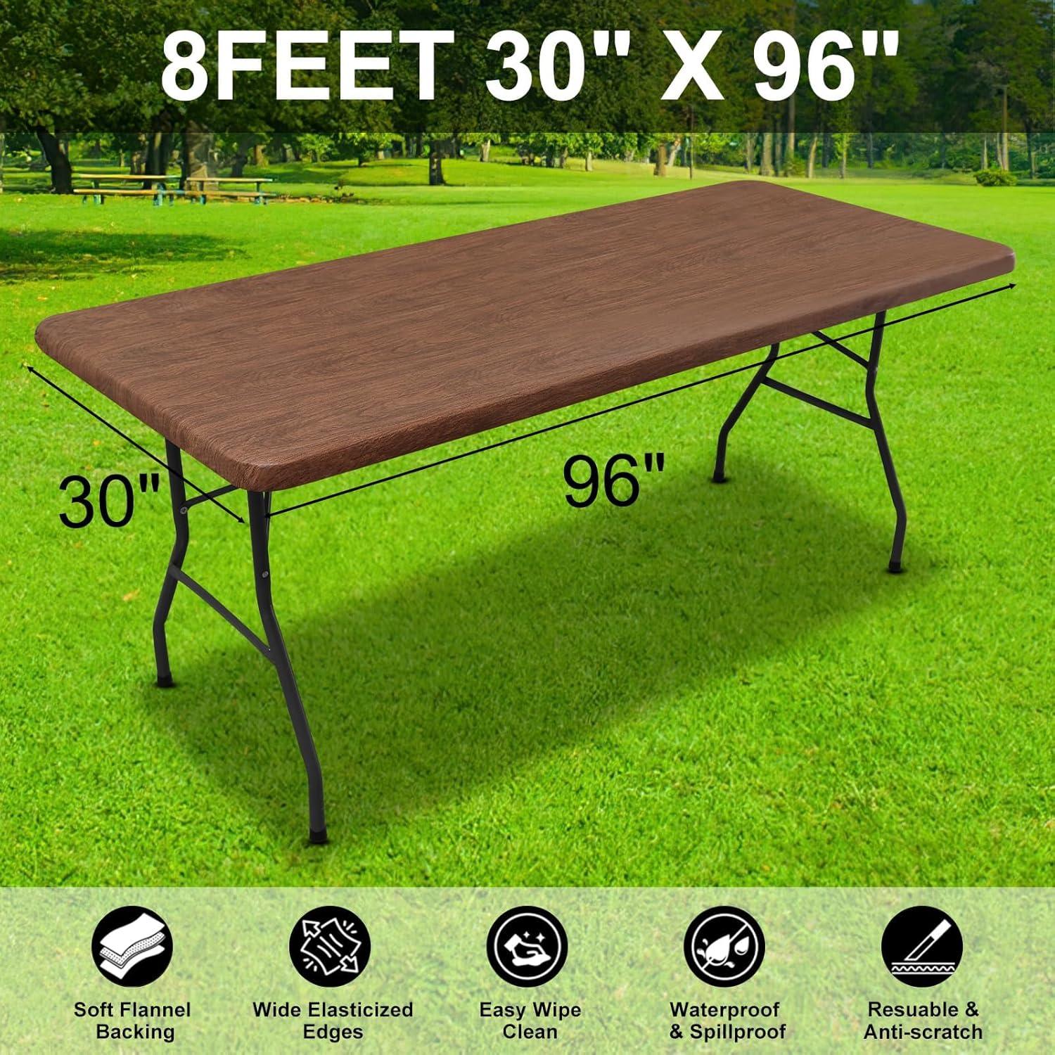 Smiry Rectangle Picnic Table Cloth, Waterproof Elastic Fitted Outdoor Tablecloths for 6 Foot Tables, Wipeable Flannel Backed Vinyl Table Cover for Camping, Dining and Indoor (30″x72″, Grey)(Brown)