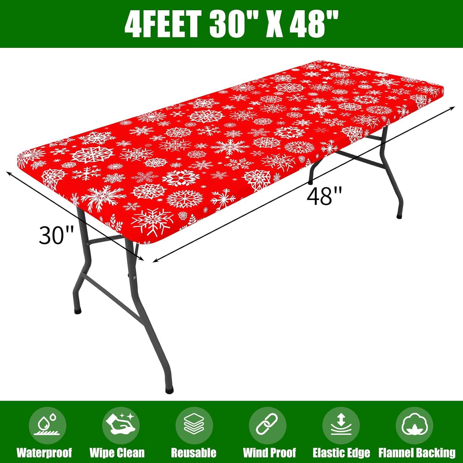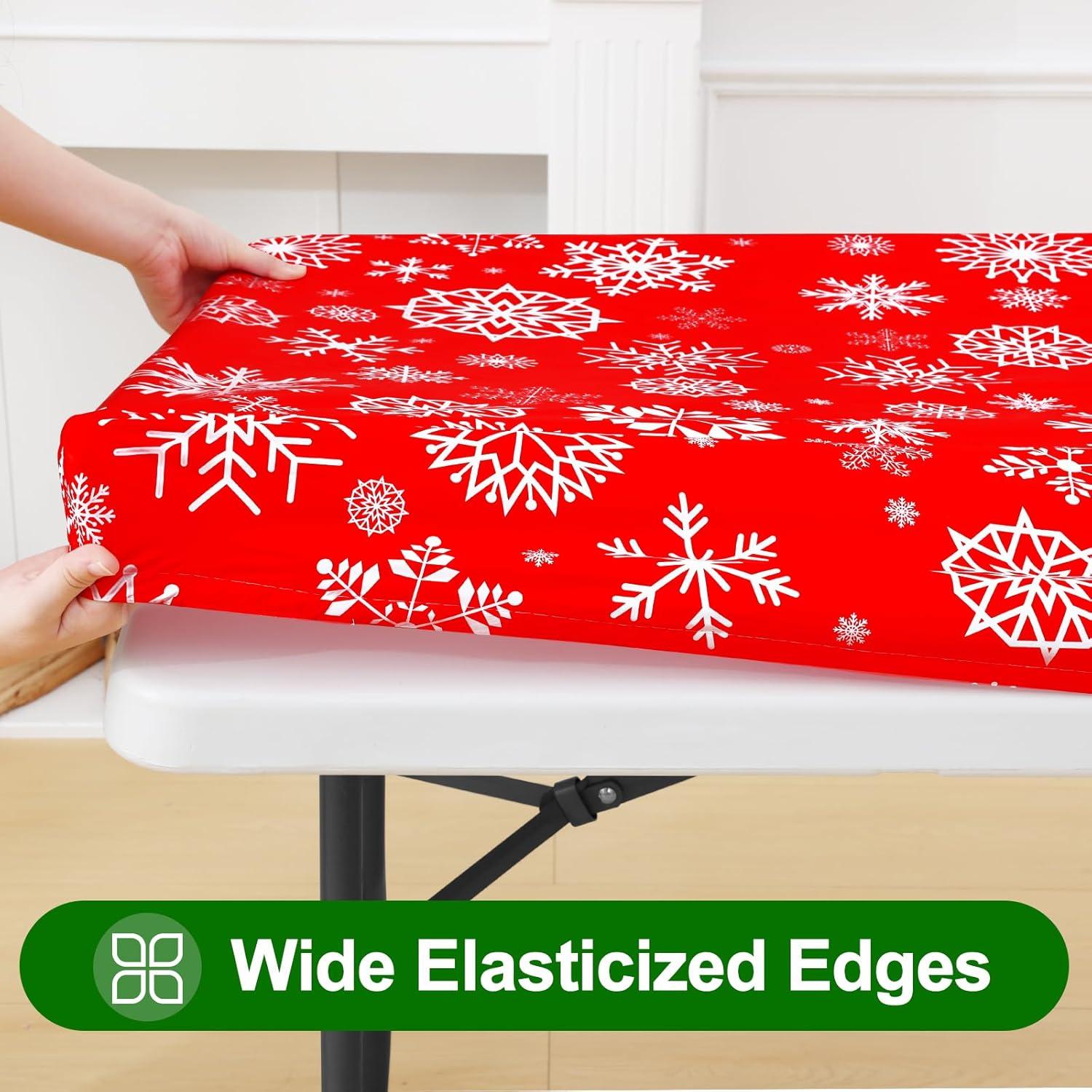 Smiry Rectangle Picnic Table Cloth, Waterproof Elastic Fitted Outdoor Tablecloths for 6 Foot Tables, Wipeable Flannel Backed Vinyl Table Cover for Camping, Dining and Indoor (30"x72", Grey)(Chirstmas Red)