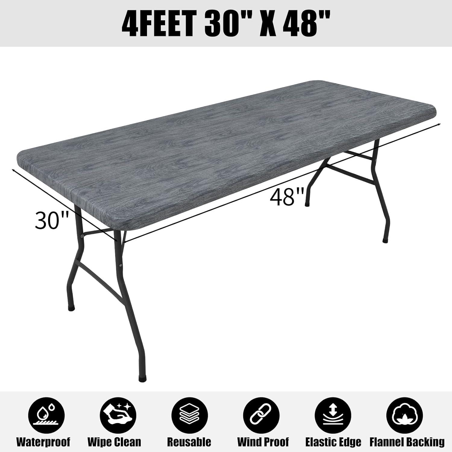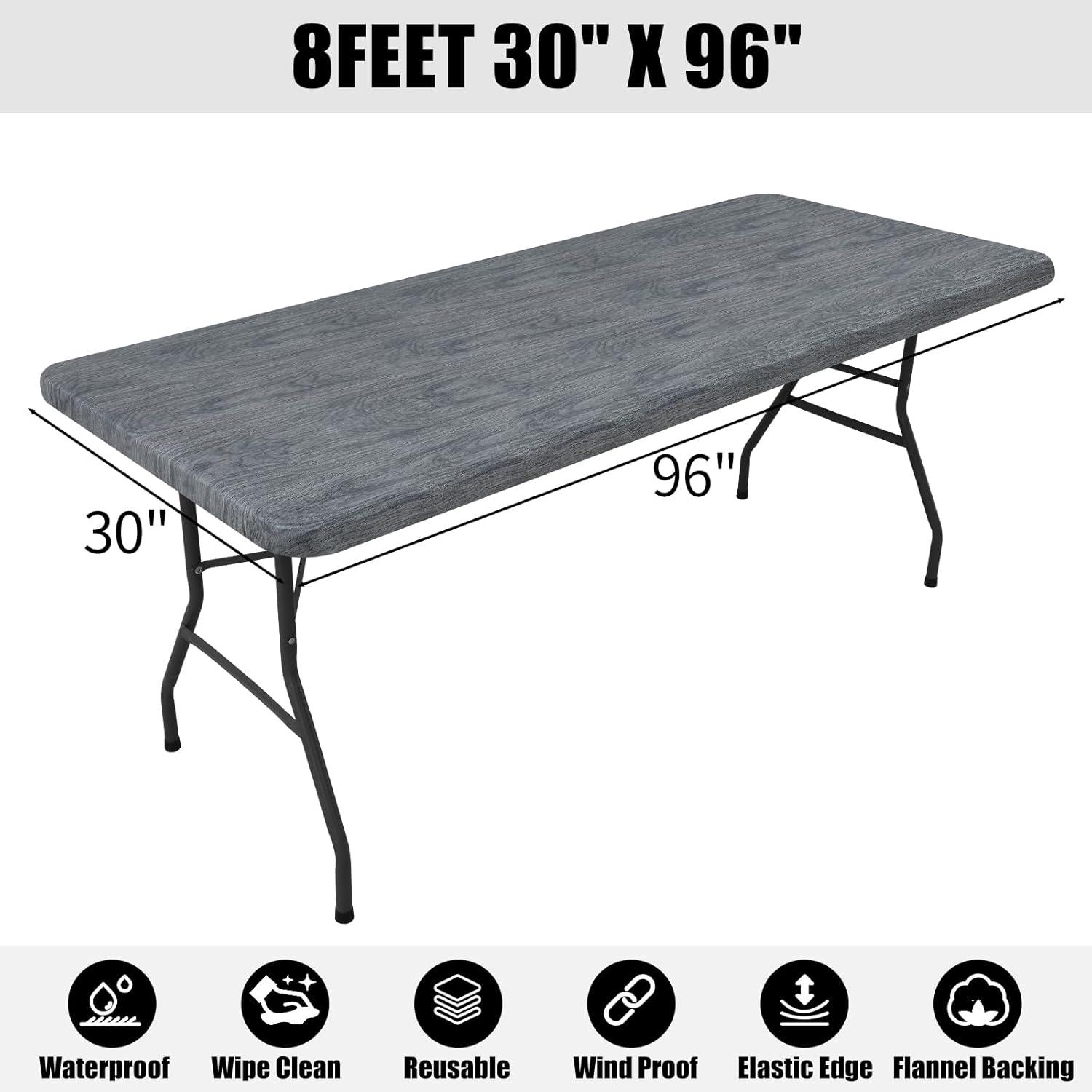 Smiry Rectangle Picnic Table Cloth, Waterproof Elastic Fitted Outdoor Tablecloths for 6 Foot Tables, Wipeable Flannel Backed Vinyl Table Cover for Camping, Dining and Indoor (30"x72", Grey)(Dark Grey)