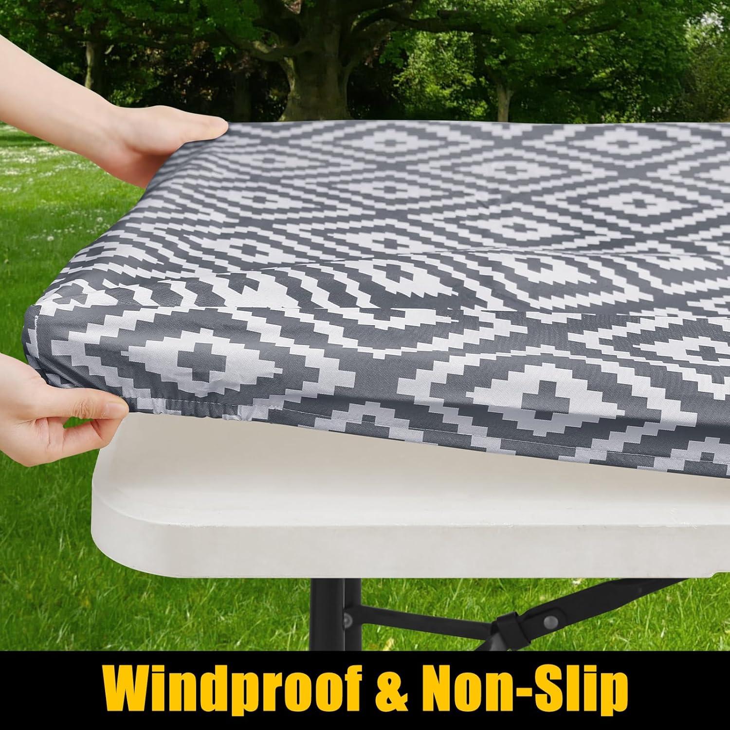 [Secure Fit with Windproof Design] Smiry's elastic-edged tablecloth ensures a snug fit, eliminating movement and the need for clips. Say goodbye to disruptions caused by wind or tugging, and savor your meals undisturbed.