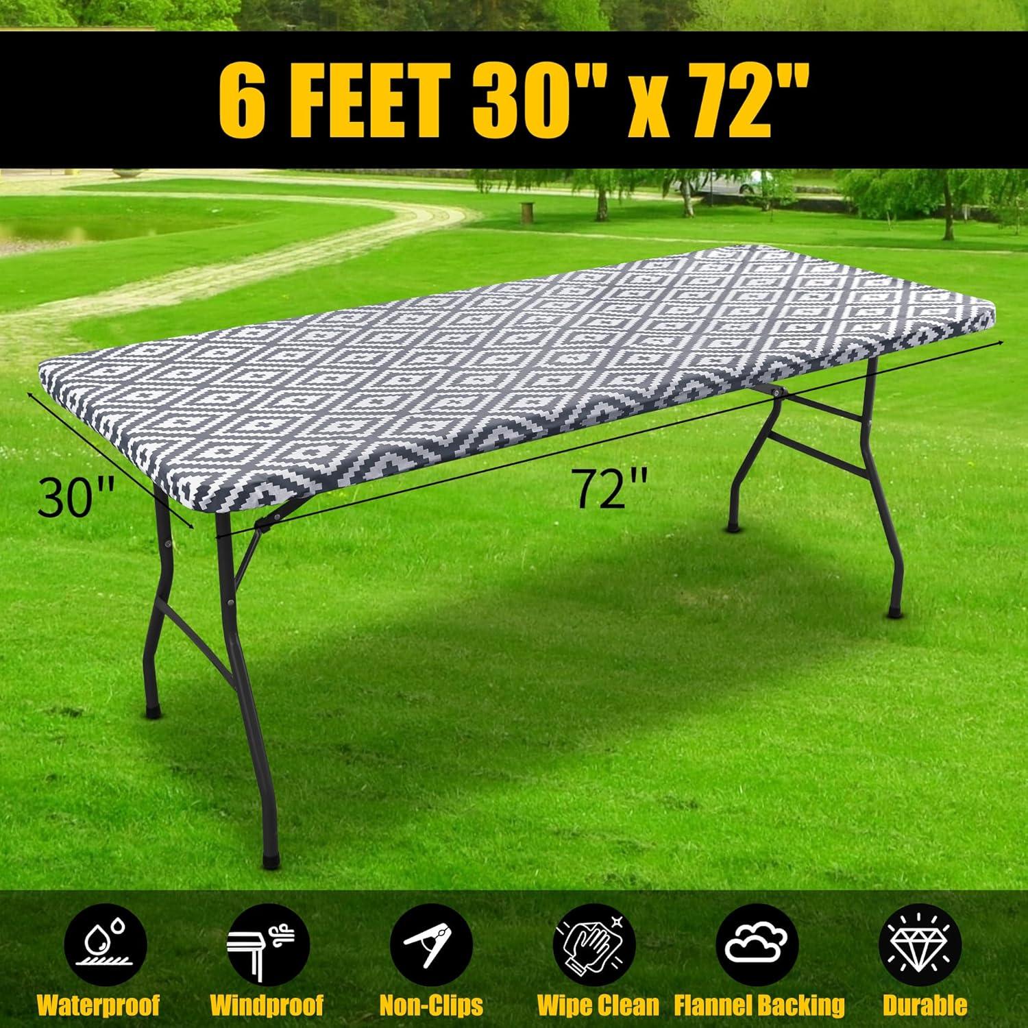 [Versatile & Reusable] Our fitted tablecloths with classic geometric patterns can give you a warm and bright dining environment, that seamlessly suits picnics, camping, patios, dining rooms, kitchens, parties, and banquets more.