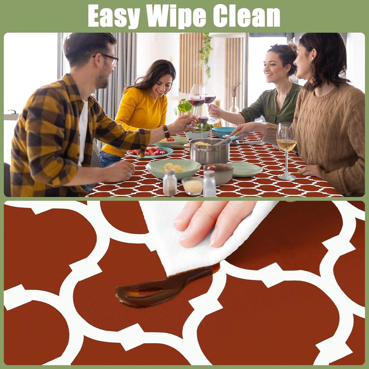 [Waterproof & Wipe Clean] Our table cover surface is made of selected vinyl material, which can effectively waterproof. Spill proof coating makes tablecloth easy to clean, just wipe it off with a damp sponge or rag in a minute.