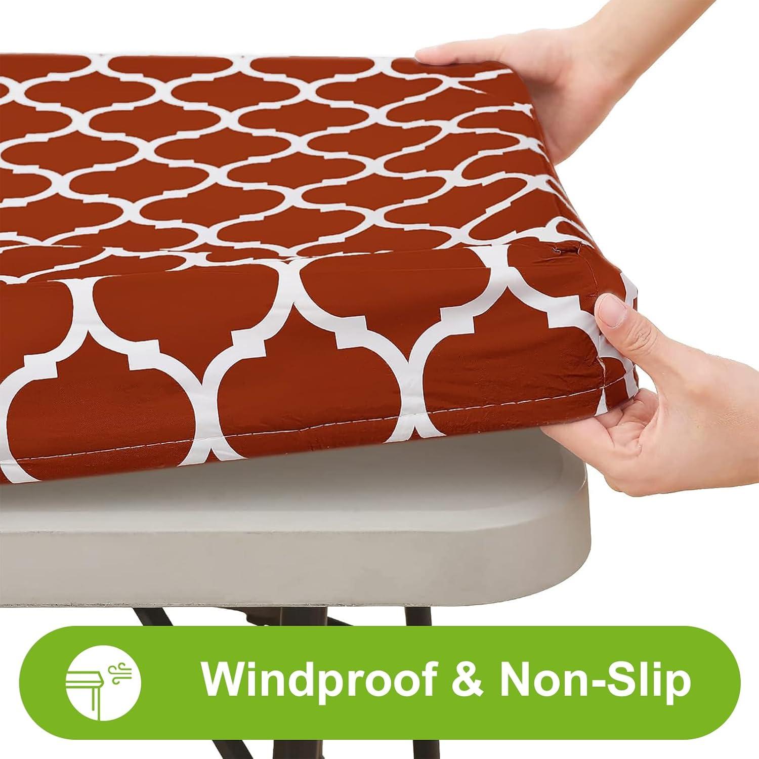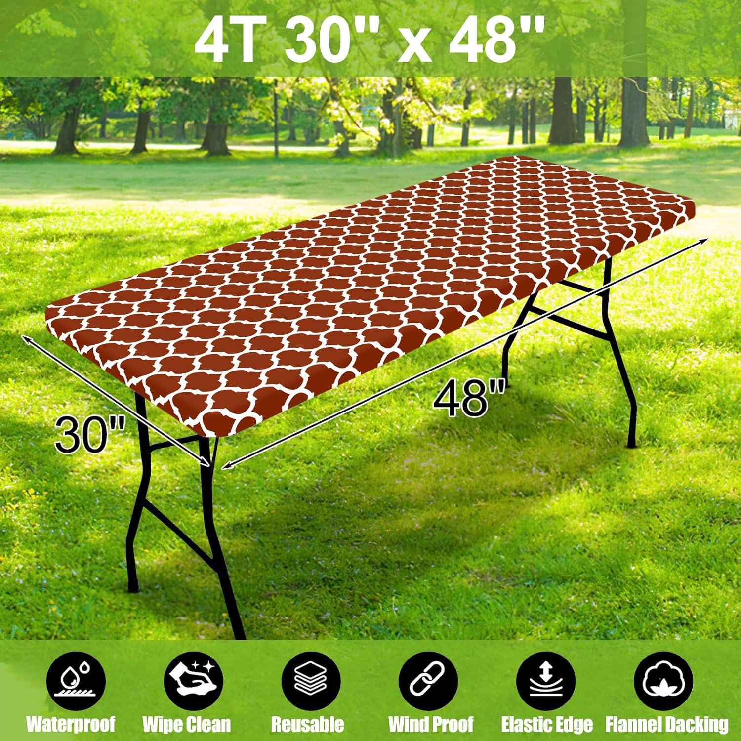 Smiry Rectangle Picnic Table Cover, Waterproof Elastic Fitted Camping Tablecloths for 6 Foot Tables, Wipeable Flannel Backed Vinyl Tablecloth Protector for Indoor, Outdoor (Teal, 30x72 Inches)(Rust)