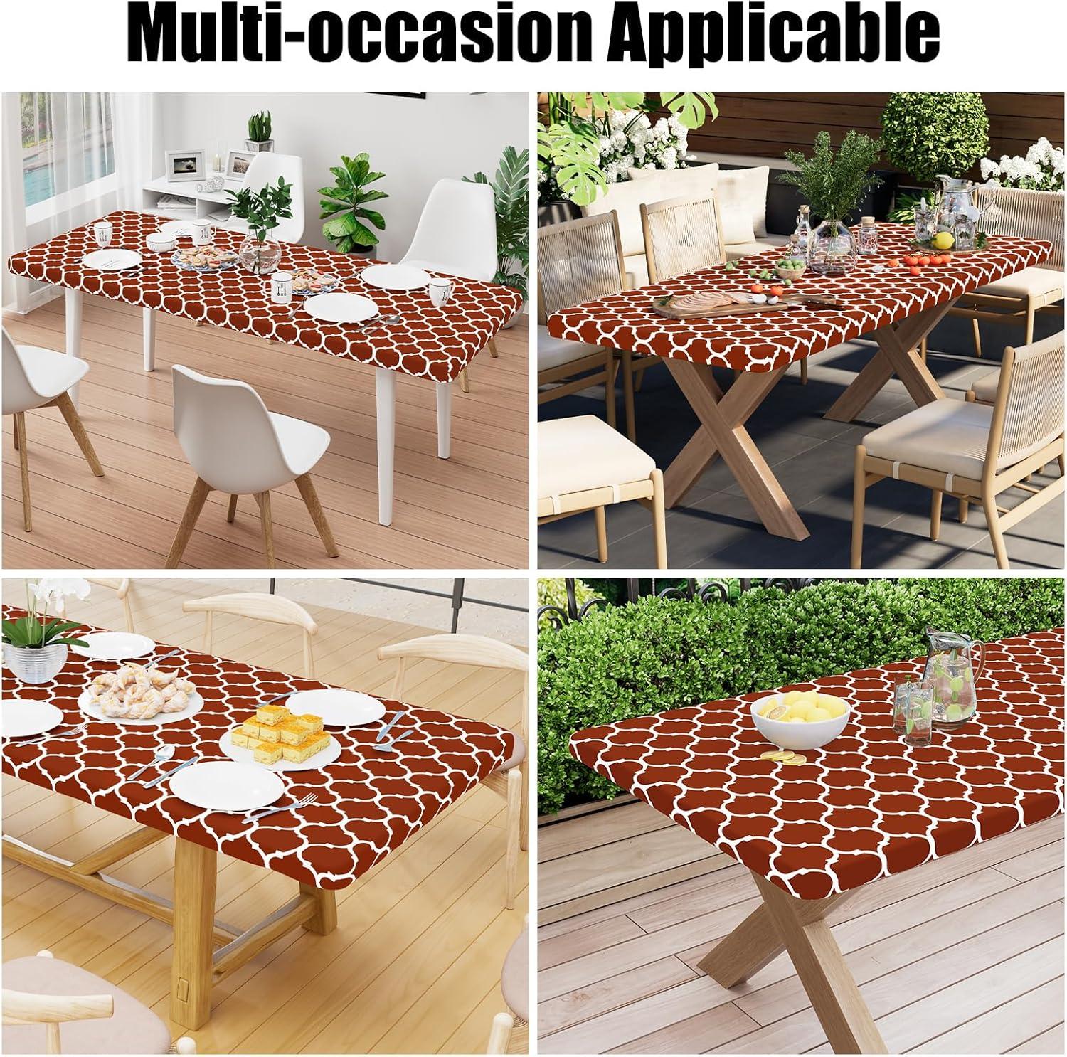 [Secure Fit with Windproof Design] Smiry's elastic-edged table cover ensures a snug fit, eliminating movement and the need for clips. Say goodbye to disruptions caused by wind or tugging, and savor your meals undisturbed.