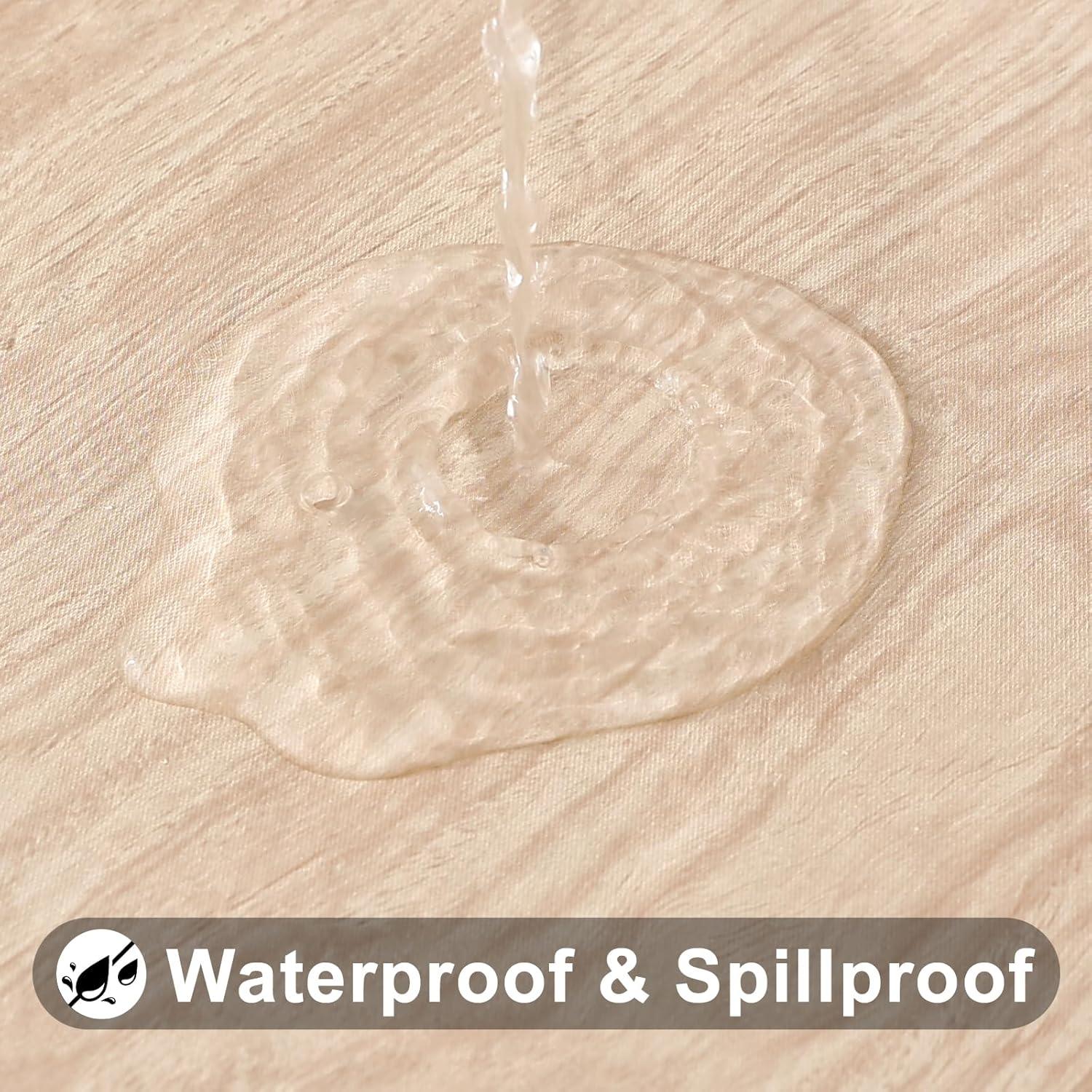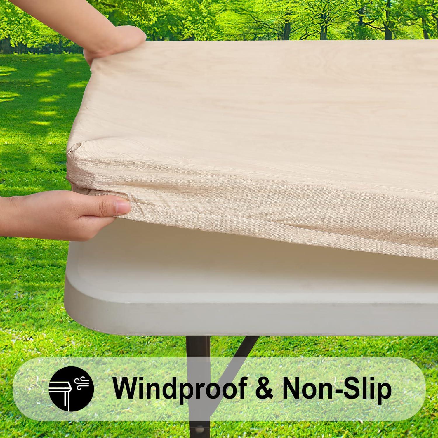 imageSmiry Rectangle Picnic Tablecloth Waterproof Elastic Fitted Table Covers for 6 Foot Tables Wipeable Flannel Backed Vinyl Tablecloths for Camping Indoor Outdoor Beige 30x72 Inches