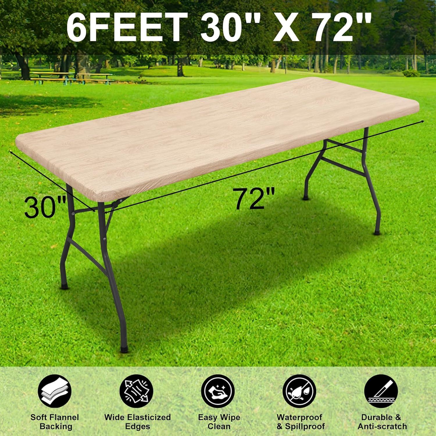 Smiry Rectangle Picnic Tablecloth, Waterproof Elastic Fitted Table Covers for 6 Foot Tables, Wipeable Flannel Backed Vinyl Tablecloths for Camping, Indoor, Outdoor (Beige, 30x72 Inches)