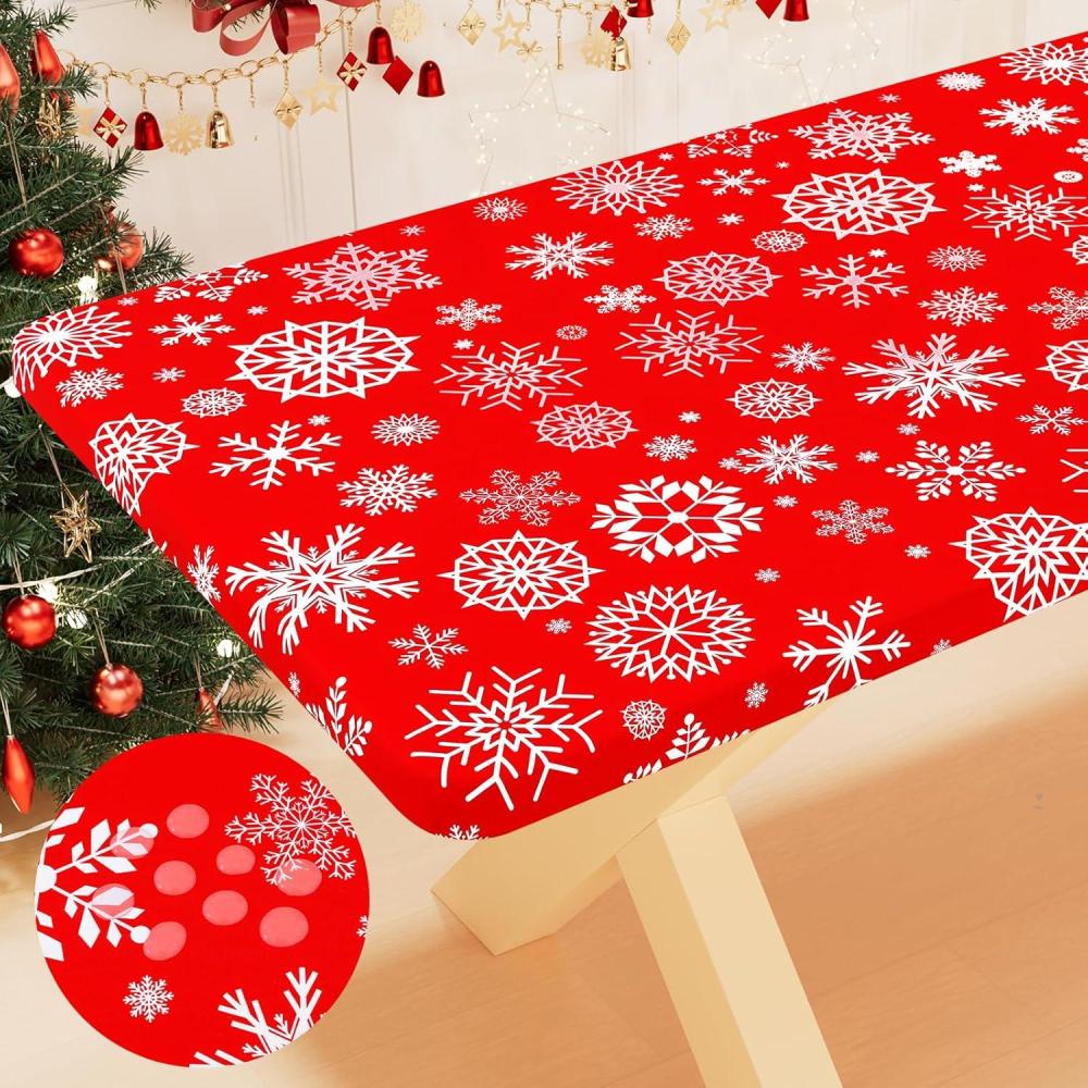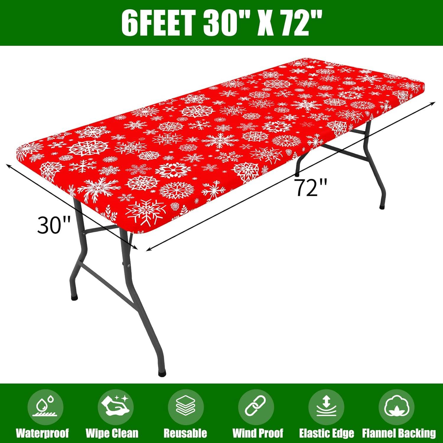 Smiry Rectangle Picnic Tablecloth, Waterproof Elastic Fitted Table Covers for 6 Foot Tables, Wipeable Flannel Backed Vinyl Tablecloths for Camping, Indoor, Outdoor (Blue Leaves, 30x72 Inches)(Chirstmas Red)