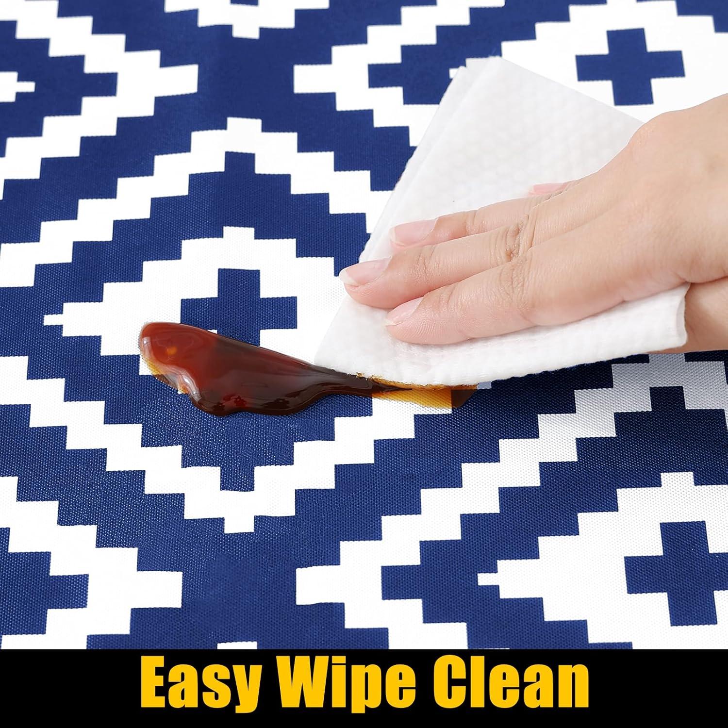 [Waterproof & Wipe Clean] Our table cover surface is made of selected vinyl material, which can effectively waterproof. Spill proof coating makes tablecloth easy to clean, just wipe it off with a damp sponge or rag in a minute.