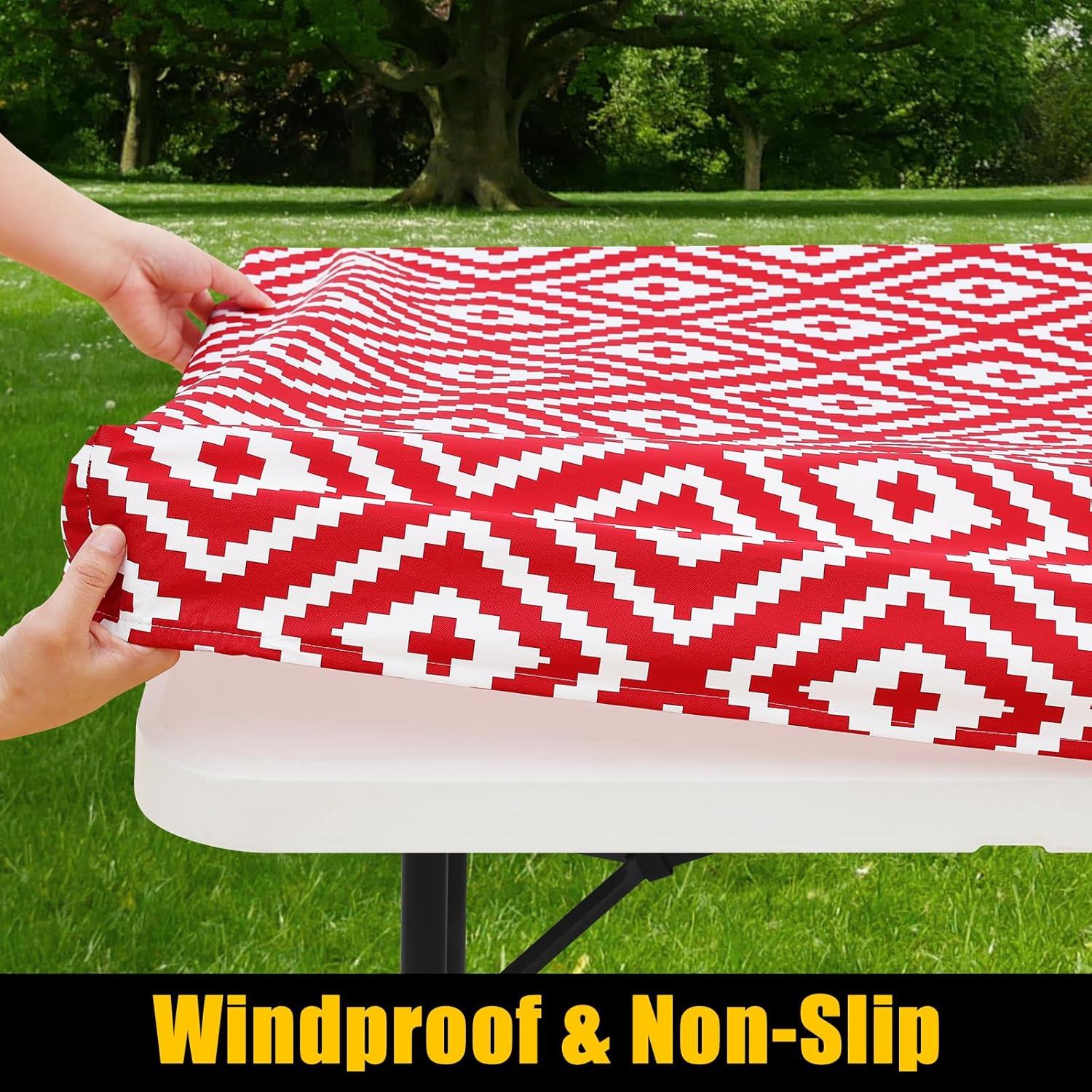 [Secure Fit with Windproof Design] Smiry's elastic-edged tablecloth ensures a snug fit, eliminating movement and the need for clips. Say goodbye to disruptions caused by wind or tugging, and savor your meals undisturbed.
