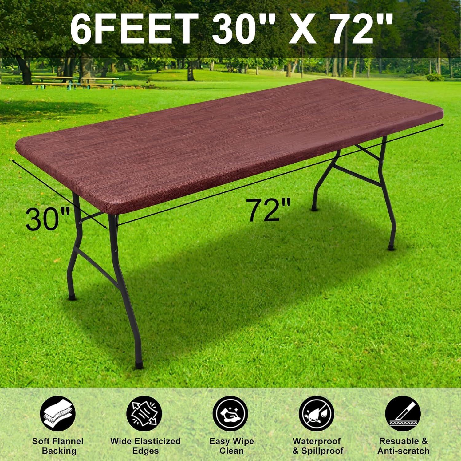 Smiry Rectangle Picnic Tablecloth, Waterproof Elastic Fitted Table Covers for 6 Foot Tables, Wipeable Flannel Backed Vinyl Tablecloths for Camping, Indoor, Outdoor (Blue Leaves, 30x72 Inches)(Reddish Brown)