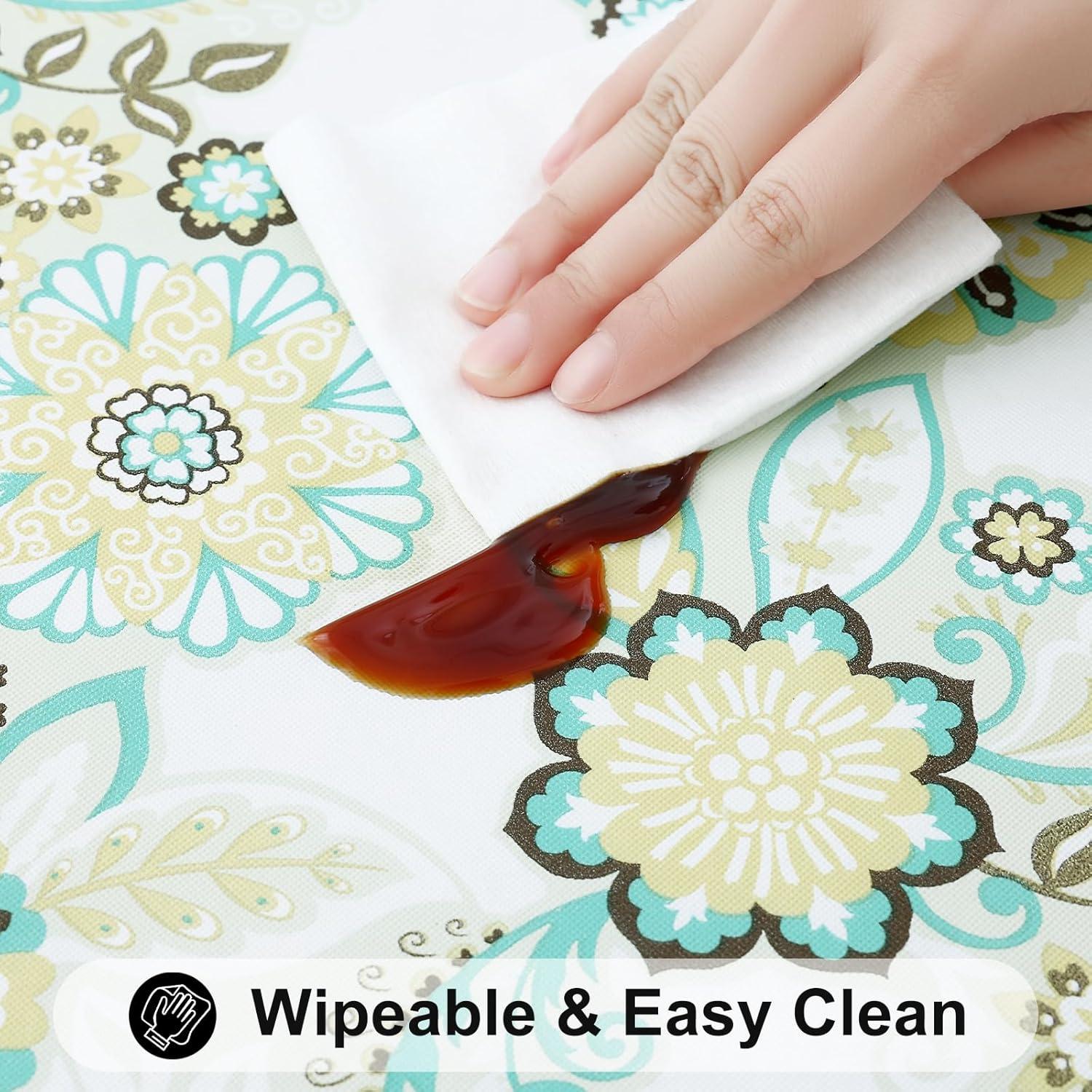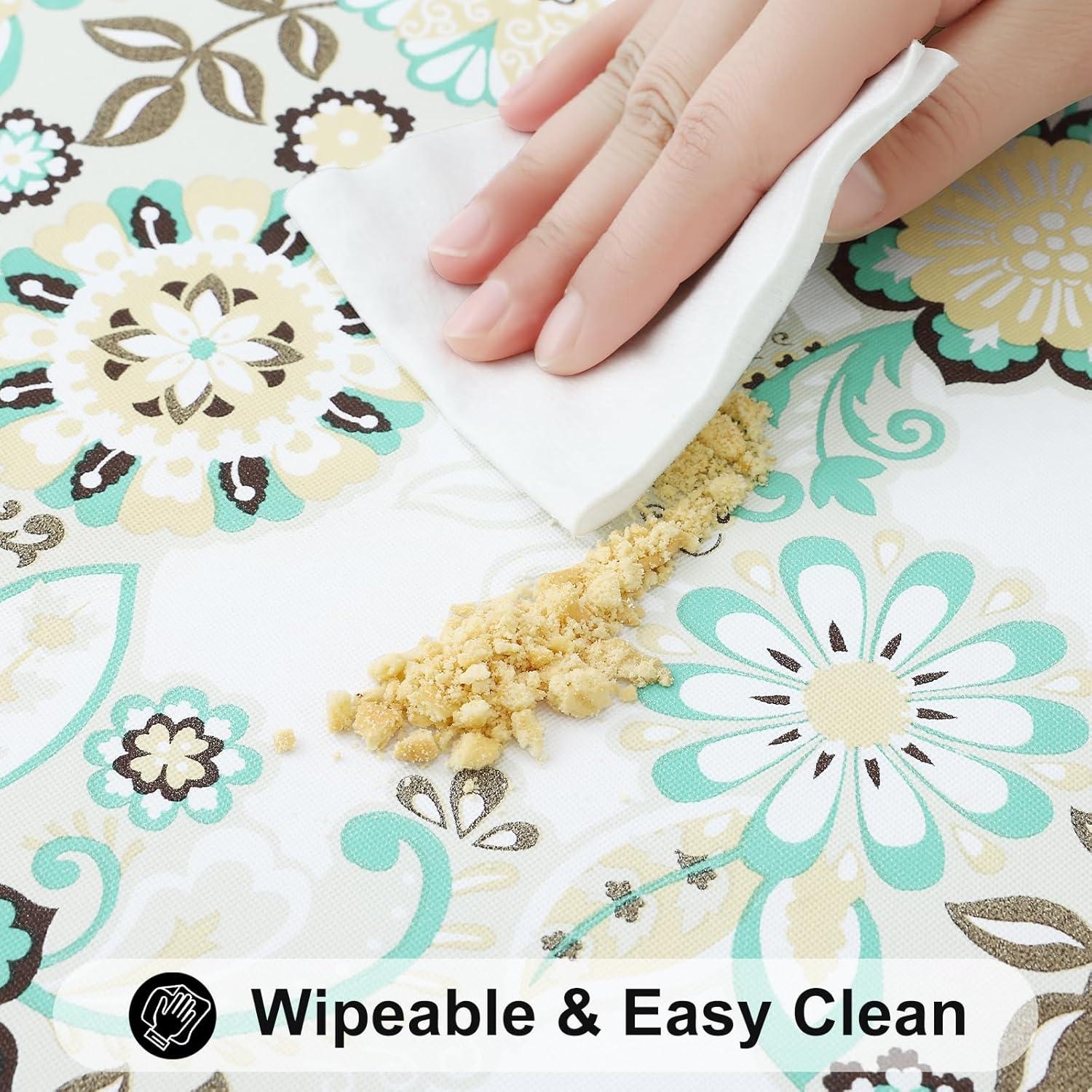 [Waterproof & Wipe Clean] Our table cover surface is made of selected vinyl material, which can effectively waterproof. Spill proof coating makes tablecloth easy to clean, just wipe it off with a damp sponge or rag in a minute.