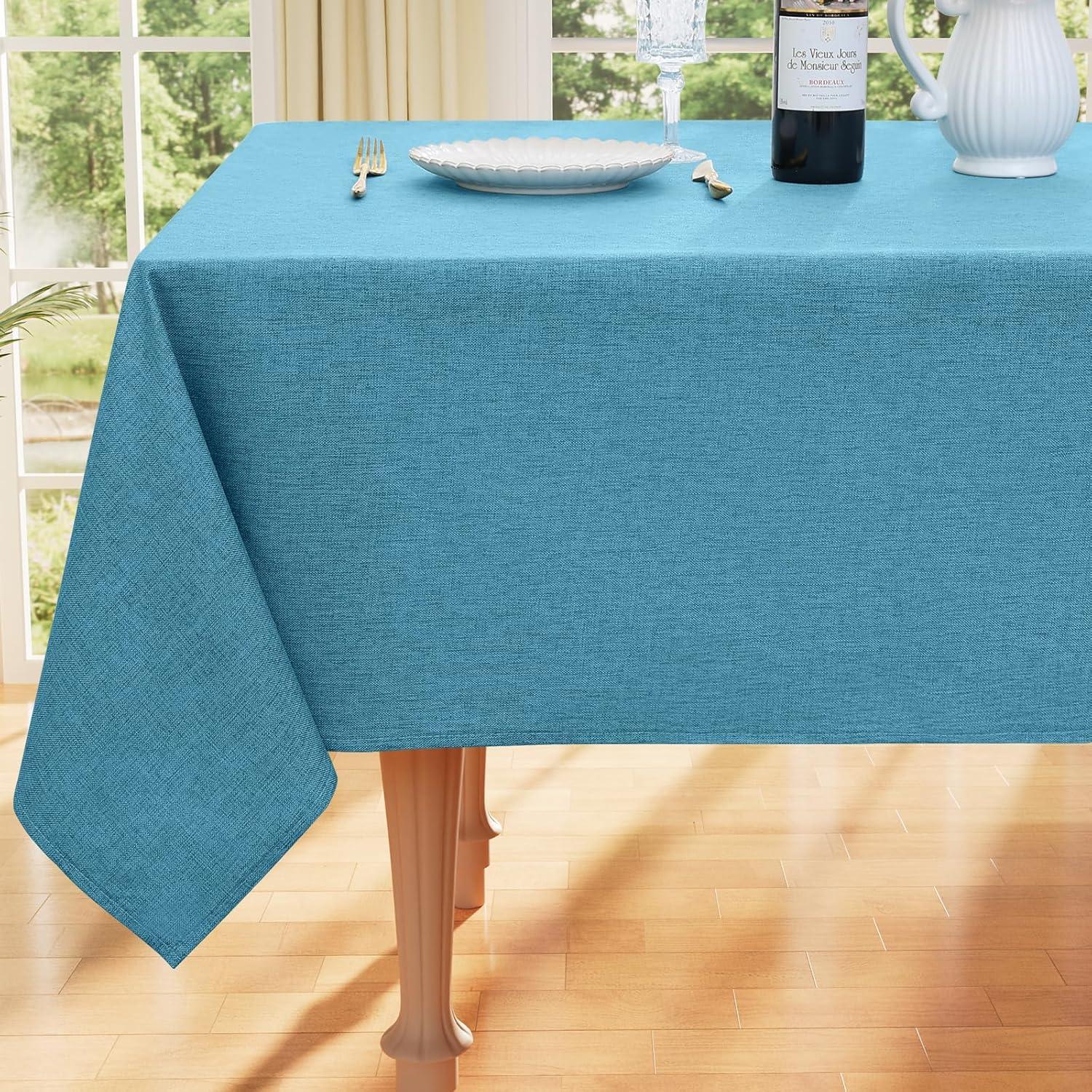 Smiry Rectangle Table Cloth Linen Textured, Waterproof Spillproof Anti-Wrinkle Burlap Tablecloth, Washable Decorative Fabric Table Cover for Dining, Party, Banquet, 52 x 70 Inch, Beige(Teal)