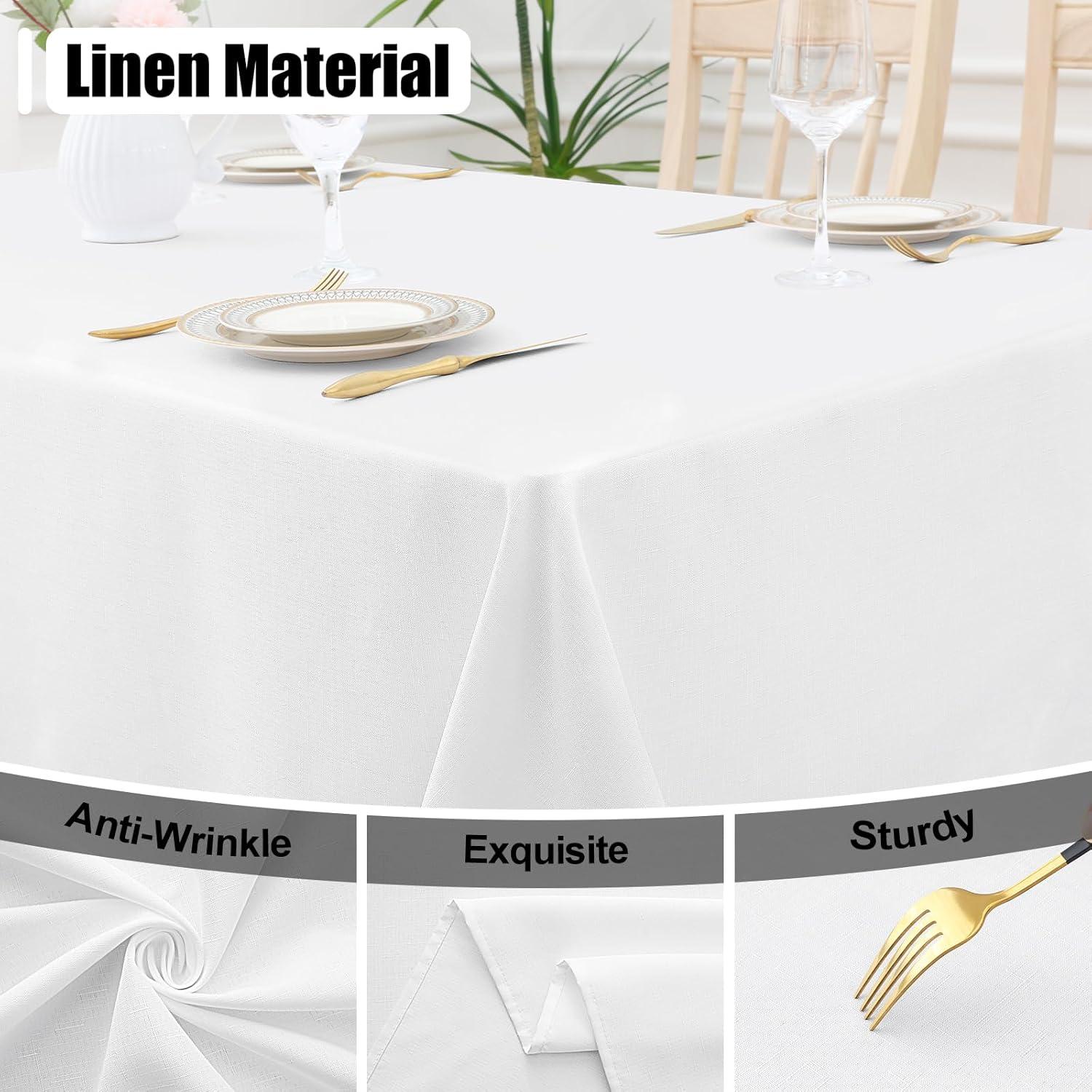 Smiry Rectangle Table Cloth Linen Textured, Waterproof Spillproof Anti-Wrinkle Burlap Tablecloth, Washable Decorative Fabric Table Cover for Dining, Party, Banquet, 52 x 70 Inch, Beige(White)