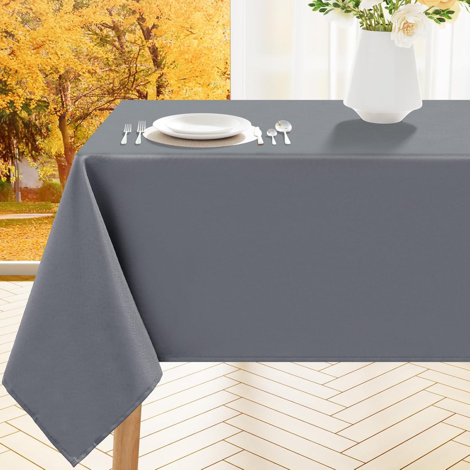Smiry Rectangle Table Cloth, Waterproof Anti-Scratch Polyester Tablecloth, Decorative Washable Fabric Table Cover for Dining, Buffet, Parties and Outdoor, 60×84, Black(Grey)
