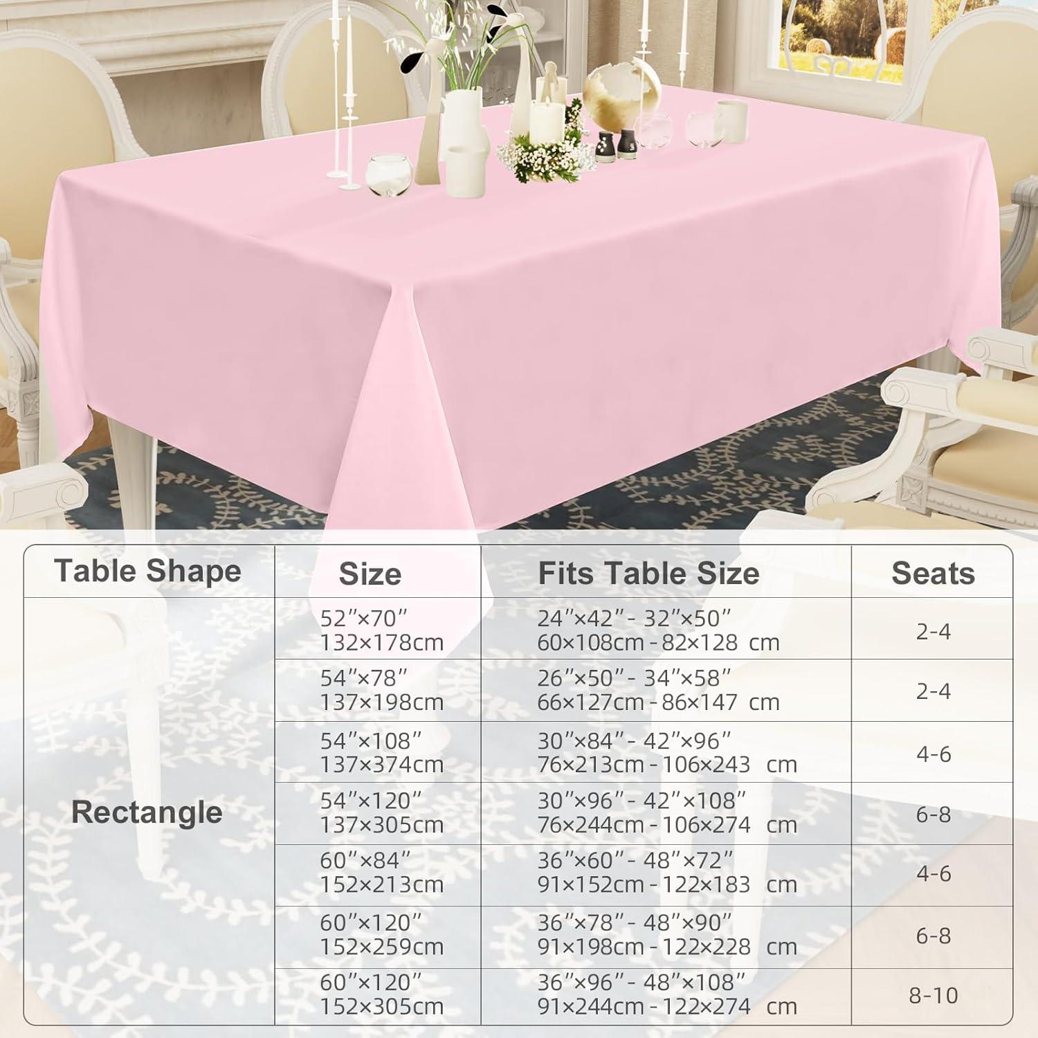 [Multi-Purpose Use] The tablecloths have classic solid color design that is suitable to use for various occasions, dining, buffet, party, wedding, patio, picnic, camping or anywhere you want to have protect and décor. To brighten up your home, you can use this as a beautiful and functional enhancement. It can be given as a present on different occasions such as Christmas, Thanksgiving, and New Year.