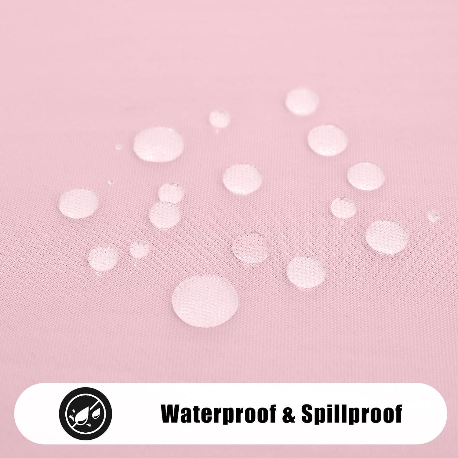 [Waterproof & Stain Proof] The table cloth is covered with a waterproof coating that causes liquids to form beads on the surface, allowing them to roll off without through to the table. This makes it easy to wipe away most of spills with a damp cloth.