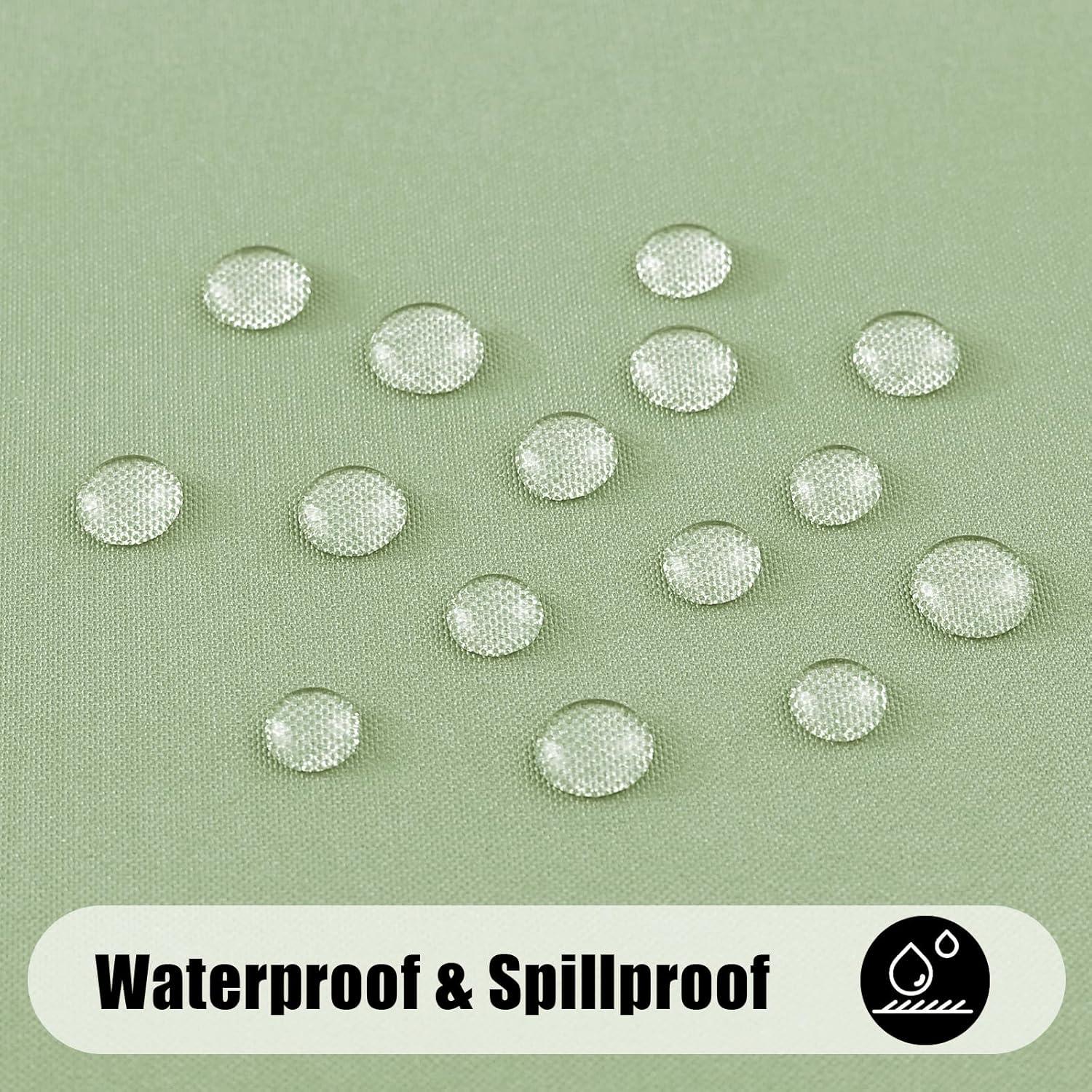 [Waterproof & Stain Proof] The table cloth is covered with a waterproof coating that causes liquids to form beads on the surface, allowing them to roll off without through to the table. This makes it easy to wipe away most of spills with a damp cloth.