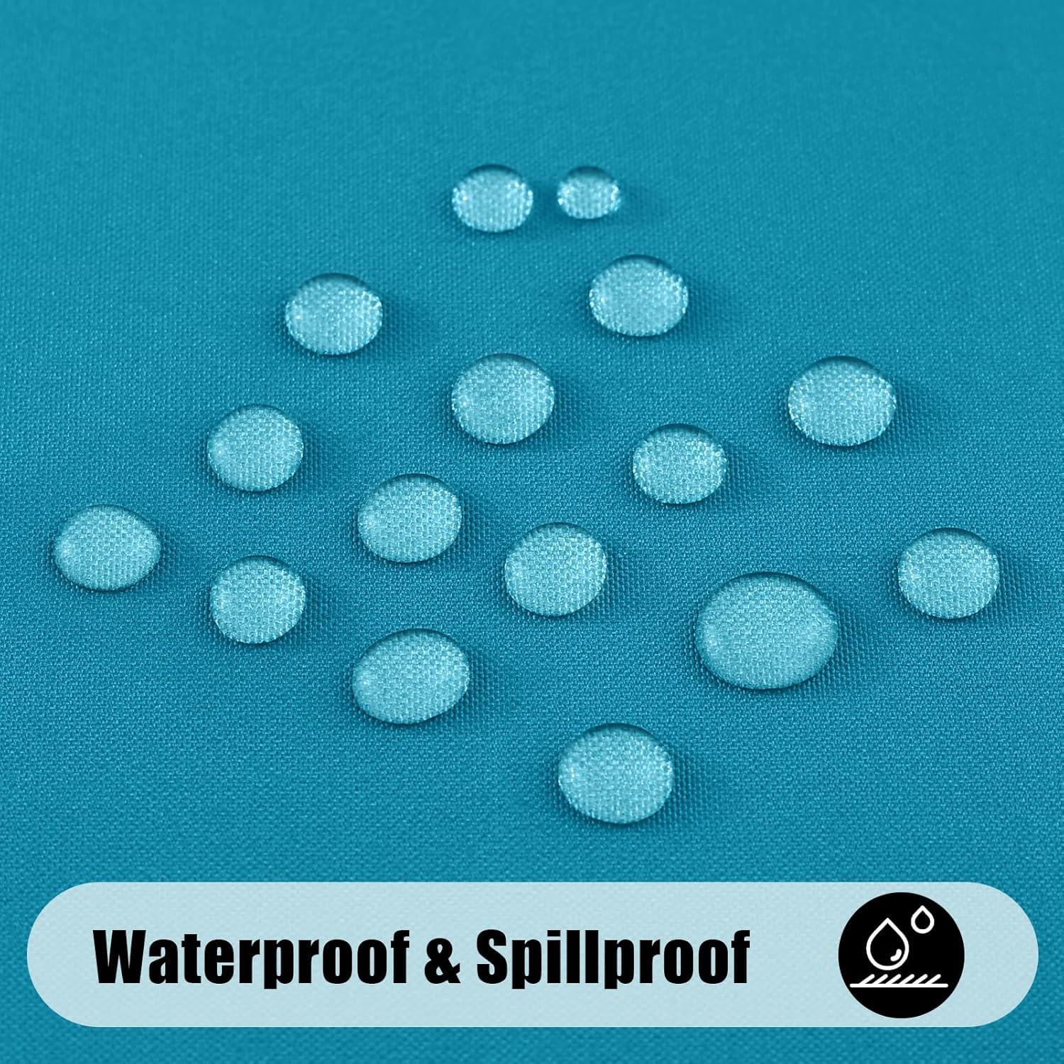 [Waterproof & Stain Proof] The table cloth is covered with a waterproof coating that causes liquids to form beads on the surface, allowing them to roll off without through to the table. This makes it easy to wipe away most of spills with a damp cloth.