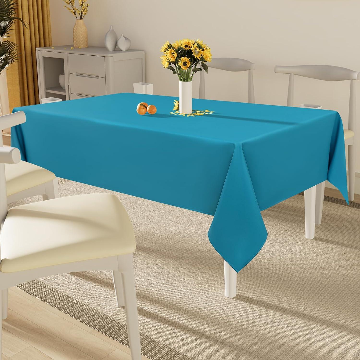 Smiry Rectangle Table Cloth, Waterproof Anti-Scratch Polyester Tablecloth, Decorative Washable Fabric Table Cover for Dining, Buffet, Parties and Outdoor, 60x84, Black(Teal)