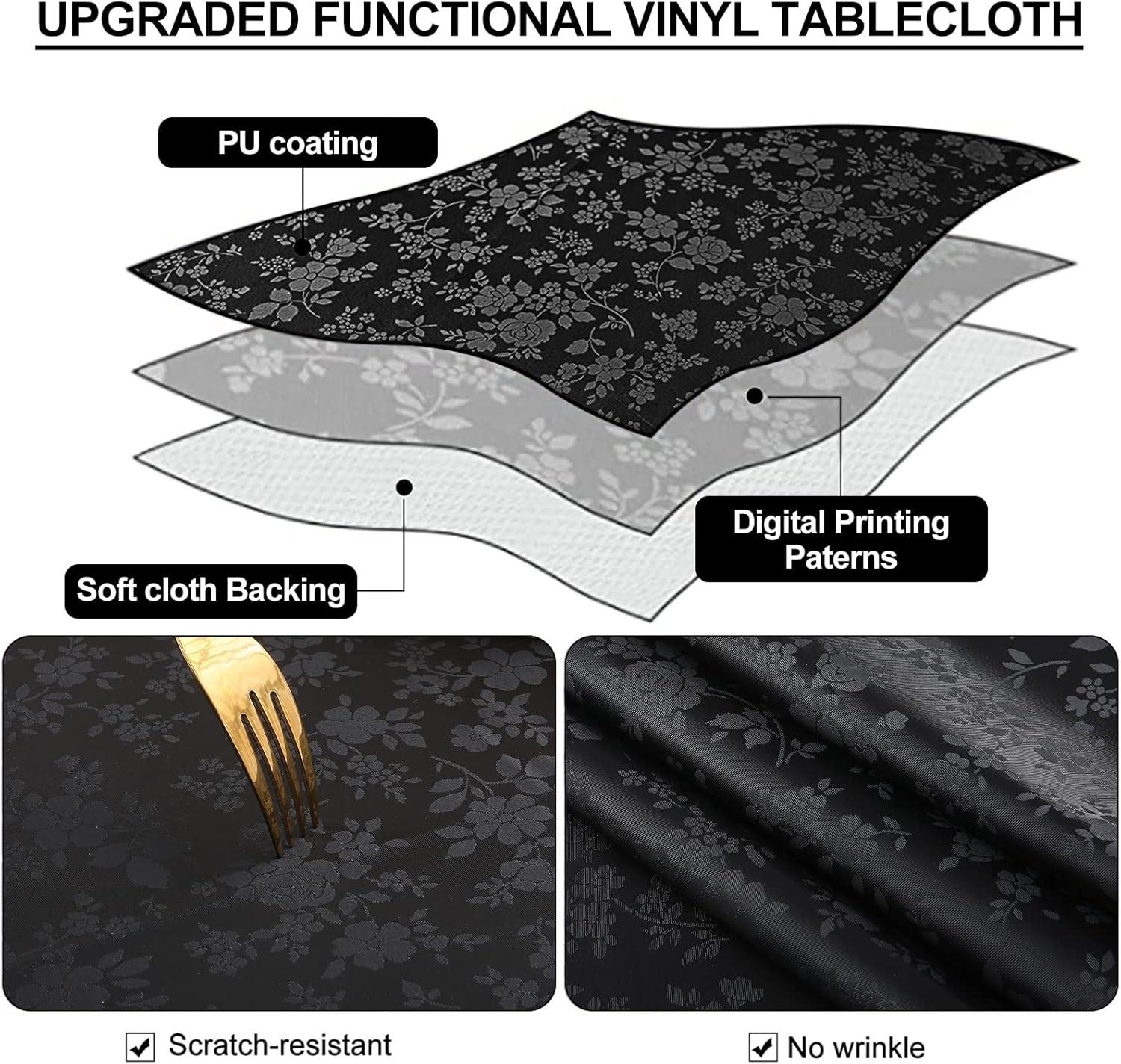 [No Slip and Nice Drape] Our vinyl tablecloth boasts a thicker build to withstand tearing and abrasion, making it a reliable choice for daily use. Additionally, its substantial weight ensures that it drapes beautifully and stays securely in place on the table. Tip: the wrinkles from transportation will easily disappear after washing and ironing.