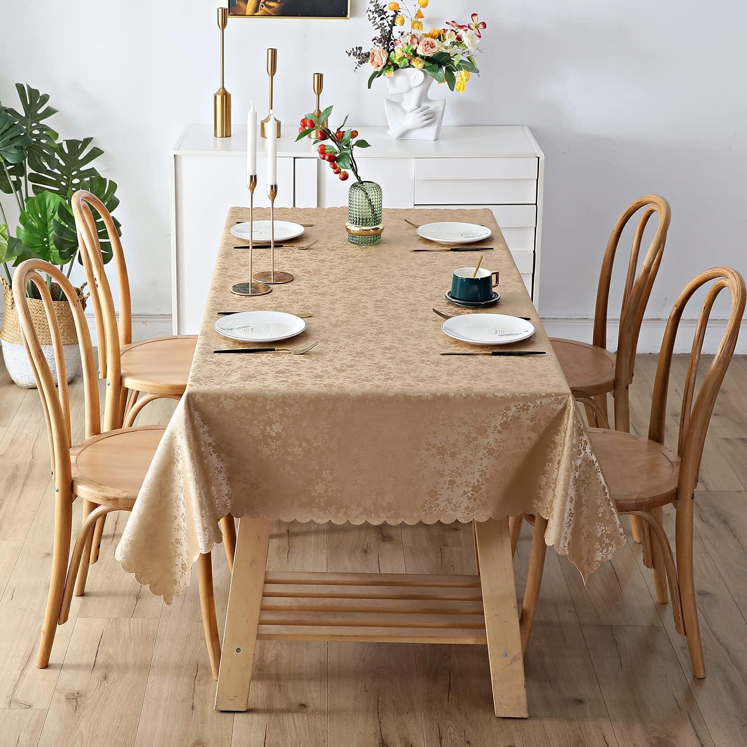 [Elegant Vinyl Tablecloth] Featuring floral embossed tablecloth with pretty scalloped edges, nice warm tone and soft touch add an elegant touch to these tablecloths, they are suited for light up your fancy dinner.