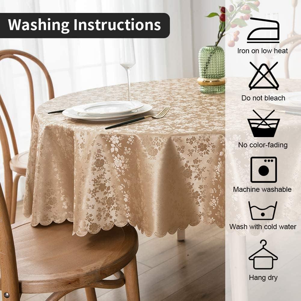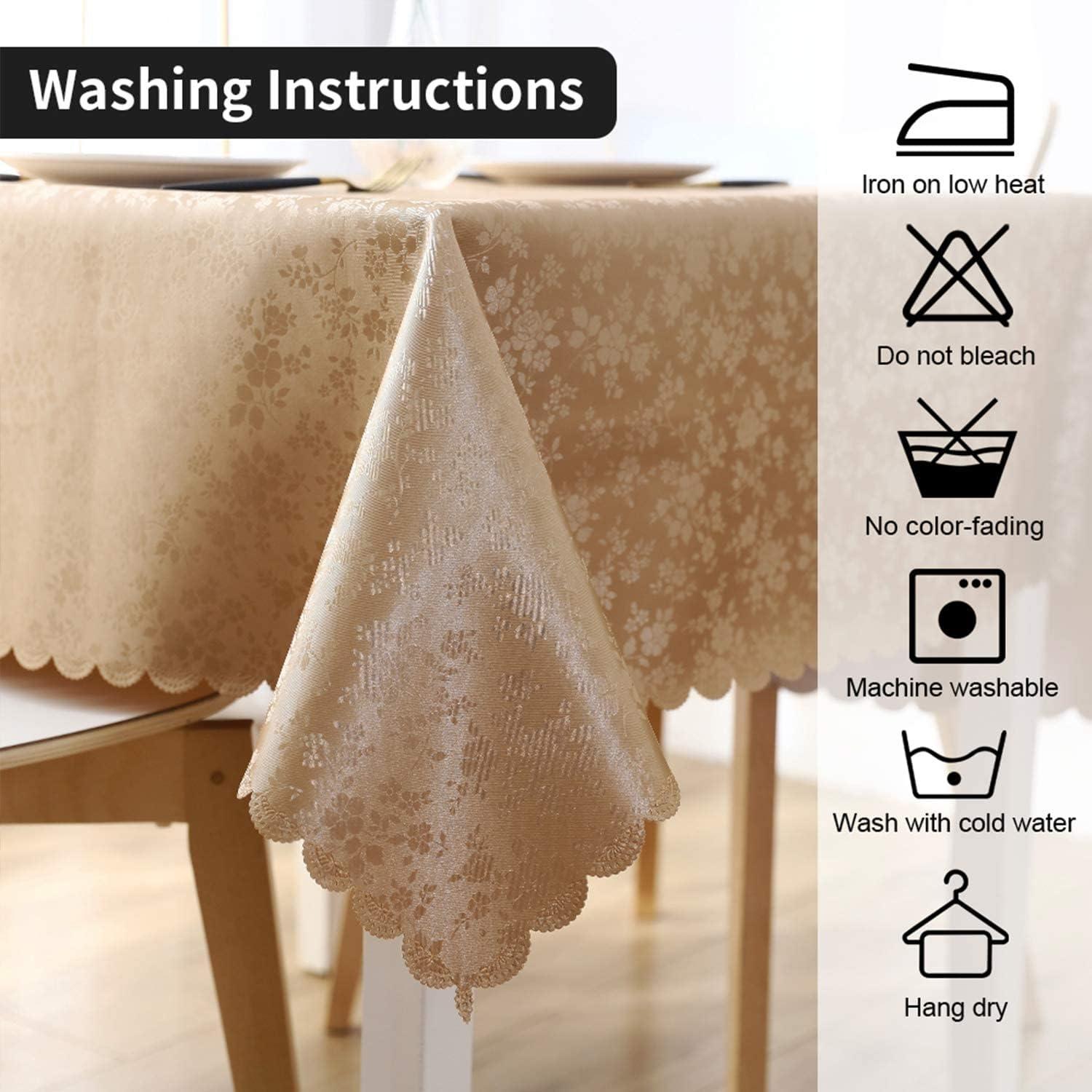 [Easy Cleaning] The surface of the Smiry tablecloth is impervious to water and spills, allowing you to effortlessly wipe away liquids with a damp cloth or napkin. For thorough cleaning, simply toss it in the washing machine with cold water and then dry it on a gentle cycle or under the shade.