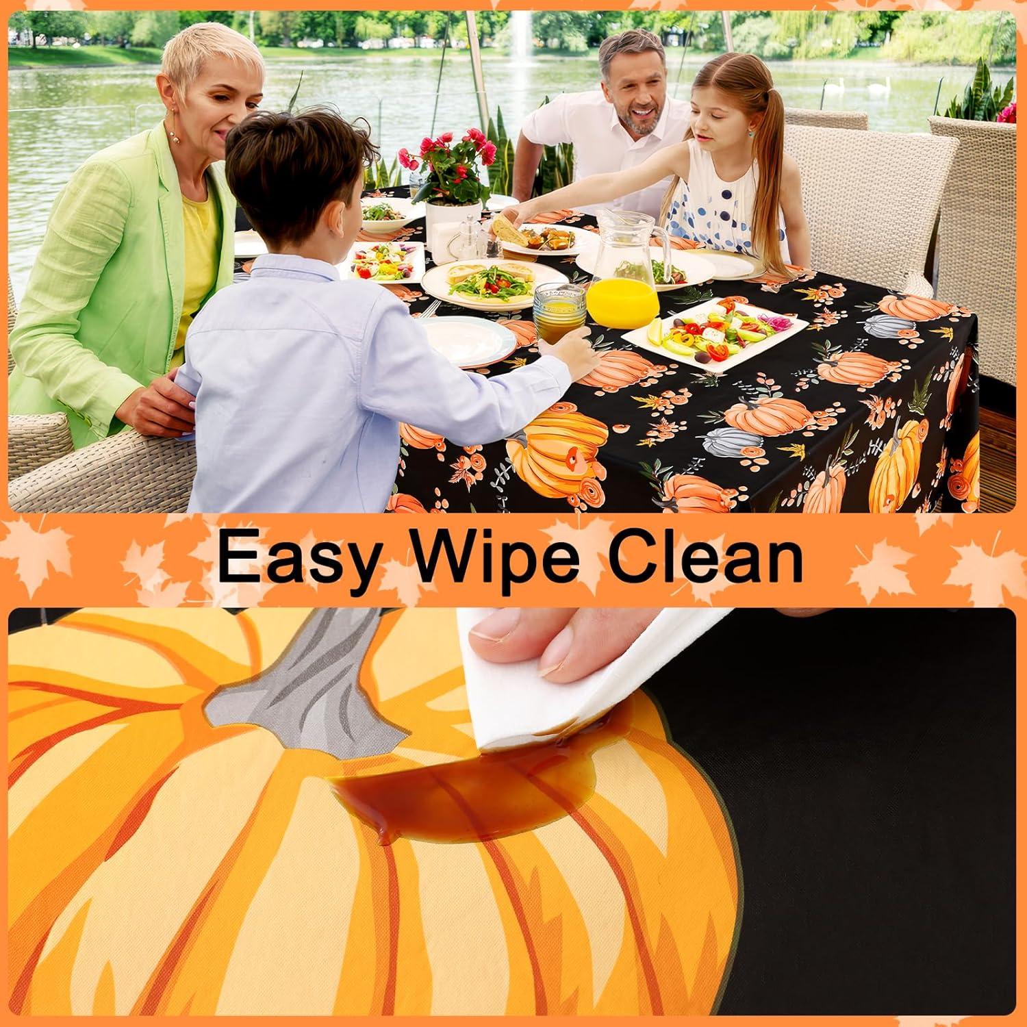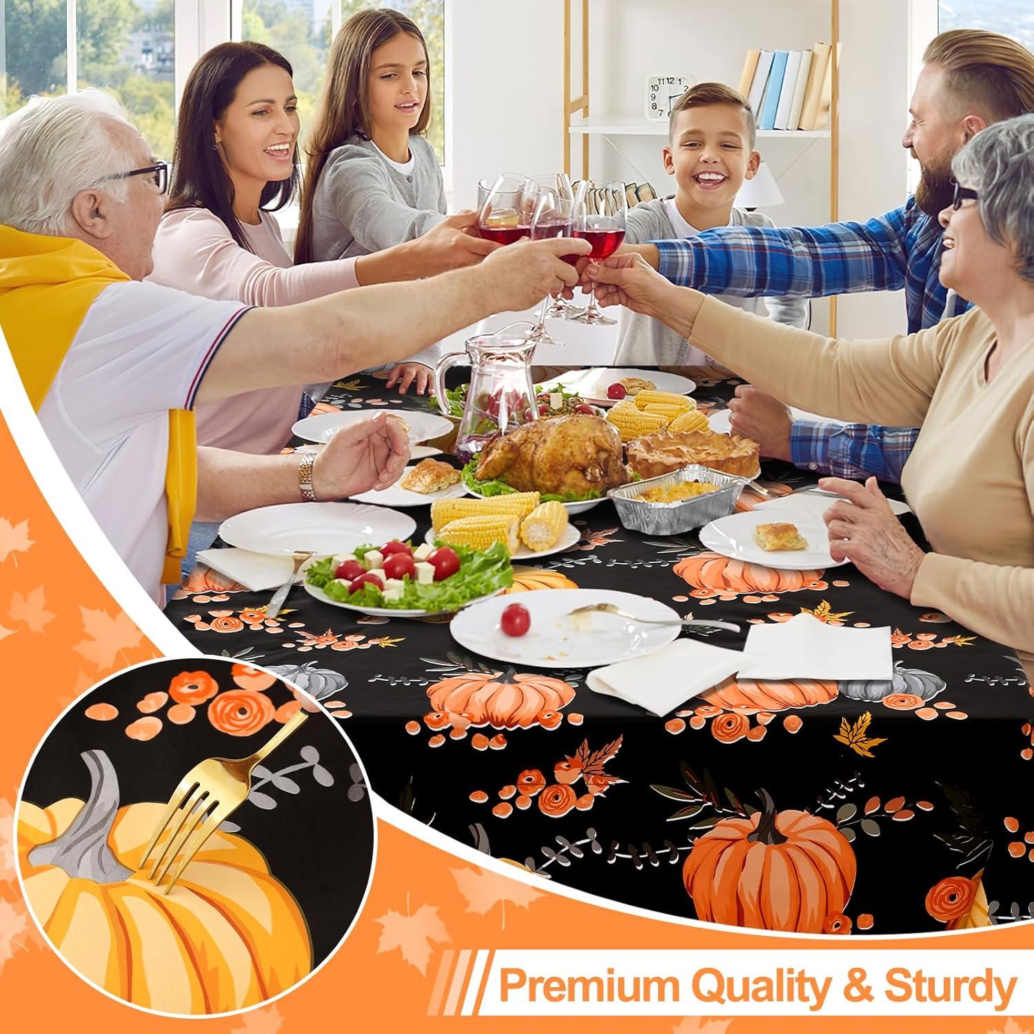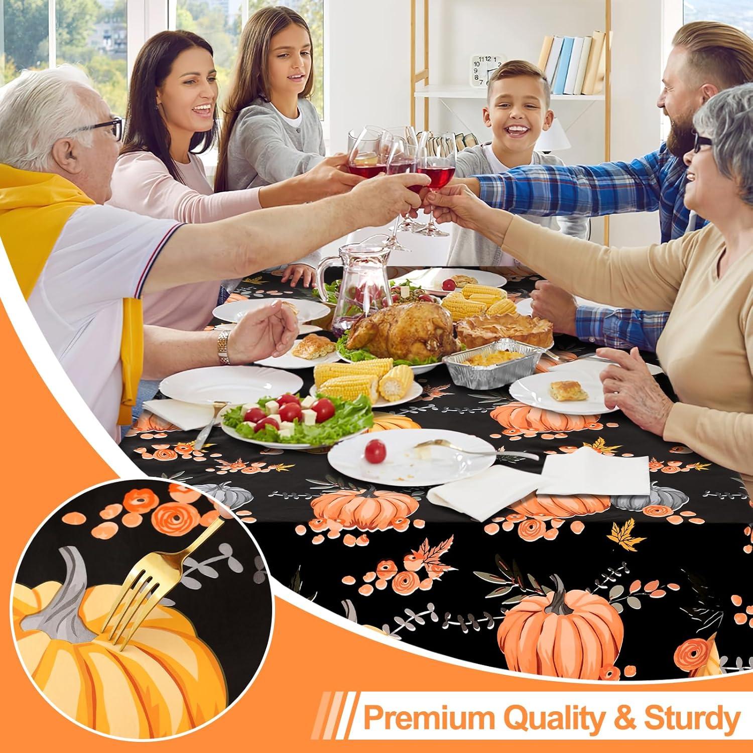Smiry Rectangle Table Cloth, Waterproof Vinyl Tablecloths with Flannel Backing for Rectangle Tables, Wipeable Spillproof Plastic Tablecloth for Dining, Camping, Indoor and Outdoor (60″x84″, Black)(Black & Orange)