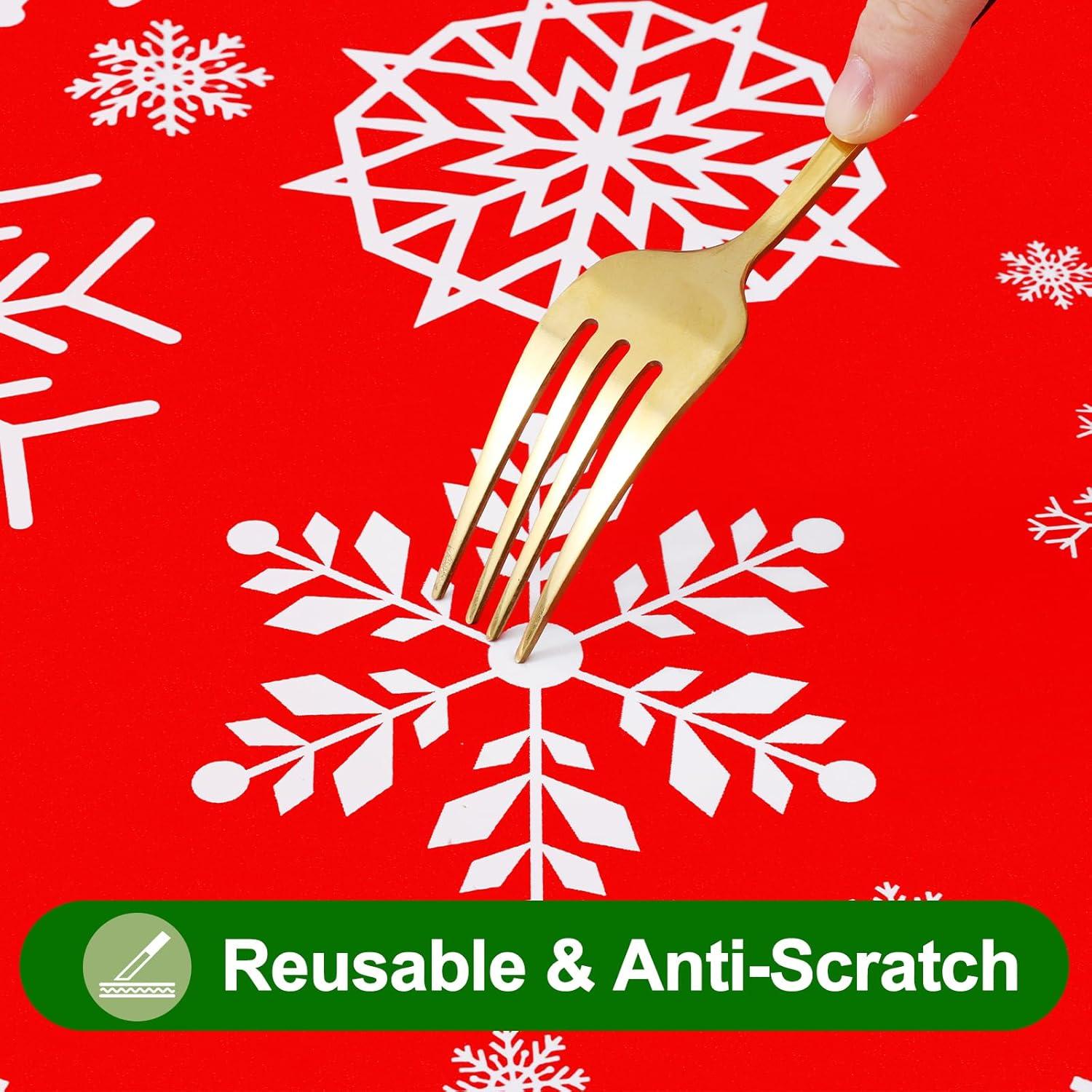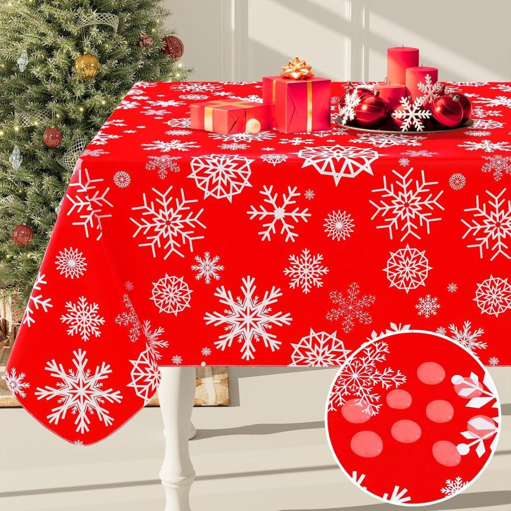 imageSmiry Rectangle Table Cloth Waterproof Vinyl Tablecloths with Flannel Backing for Rectangle Tables Wipeable Spillproof Plastic Tablecloth for Dining Camping Indoor and Outdoor 60quotx84quot BlackChristmas Red
