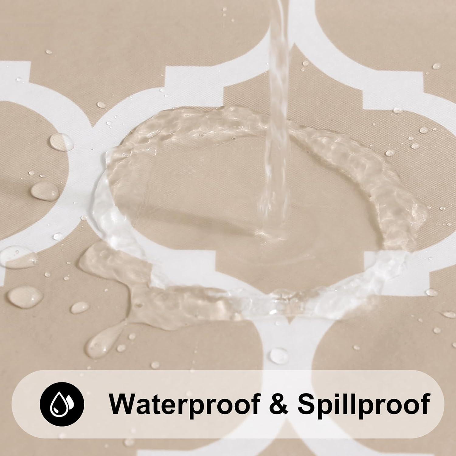 [Waterproof and Wipe Clean] The waterproof vinyl surfaces insulate our table cloths from water, milk, oil and other stains. Just rub with a damp cloth or sponge to remove the stain and look fresh.