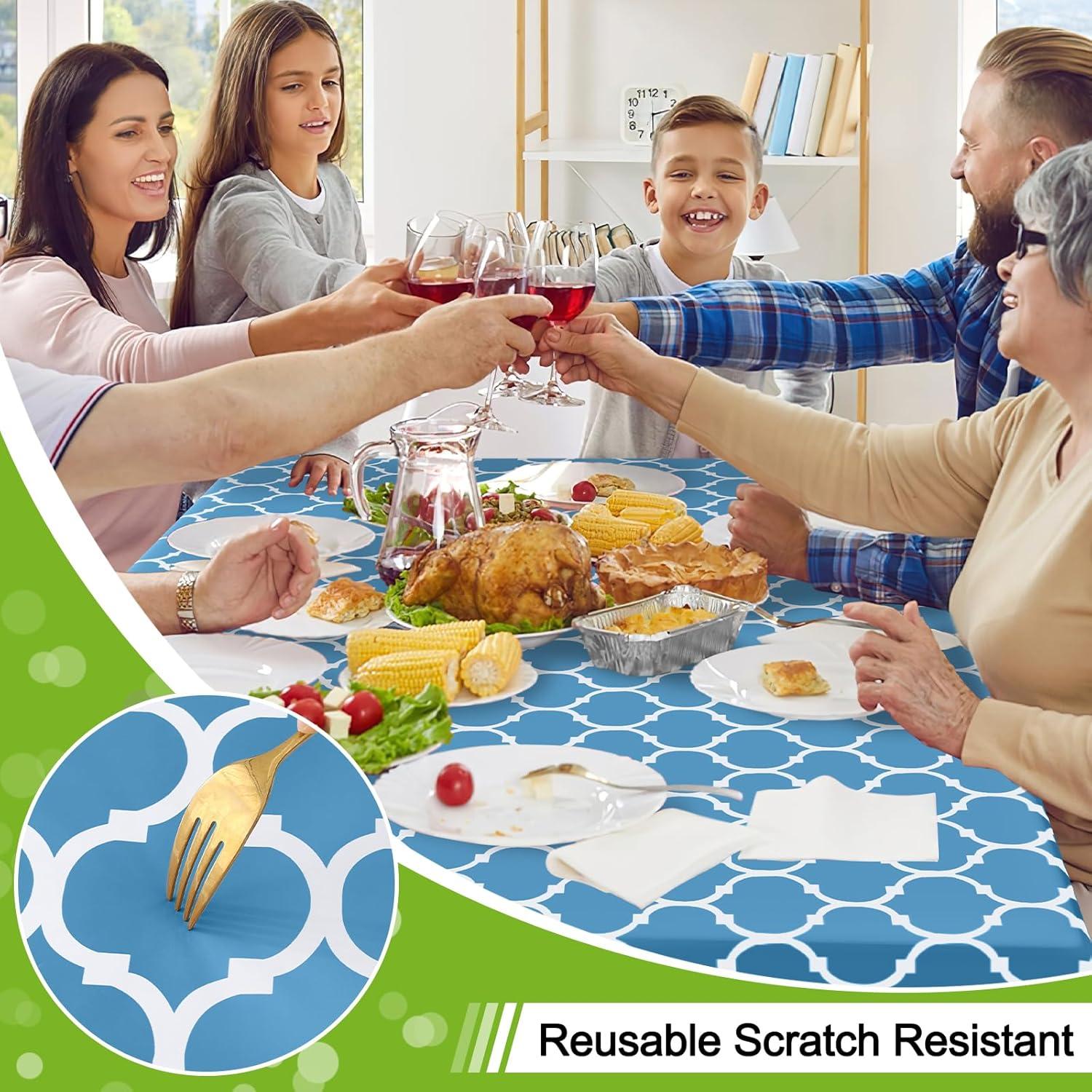 [Non-slip Flannel Backing] Smiry Plastic tablecloth with flannel backing increase the friction between the table and the tablecloth, keeping the tablecloth from sliding and causing food spills. Suitable for families with small children and pets.