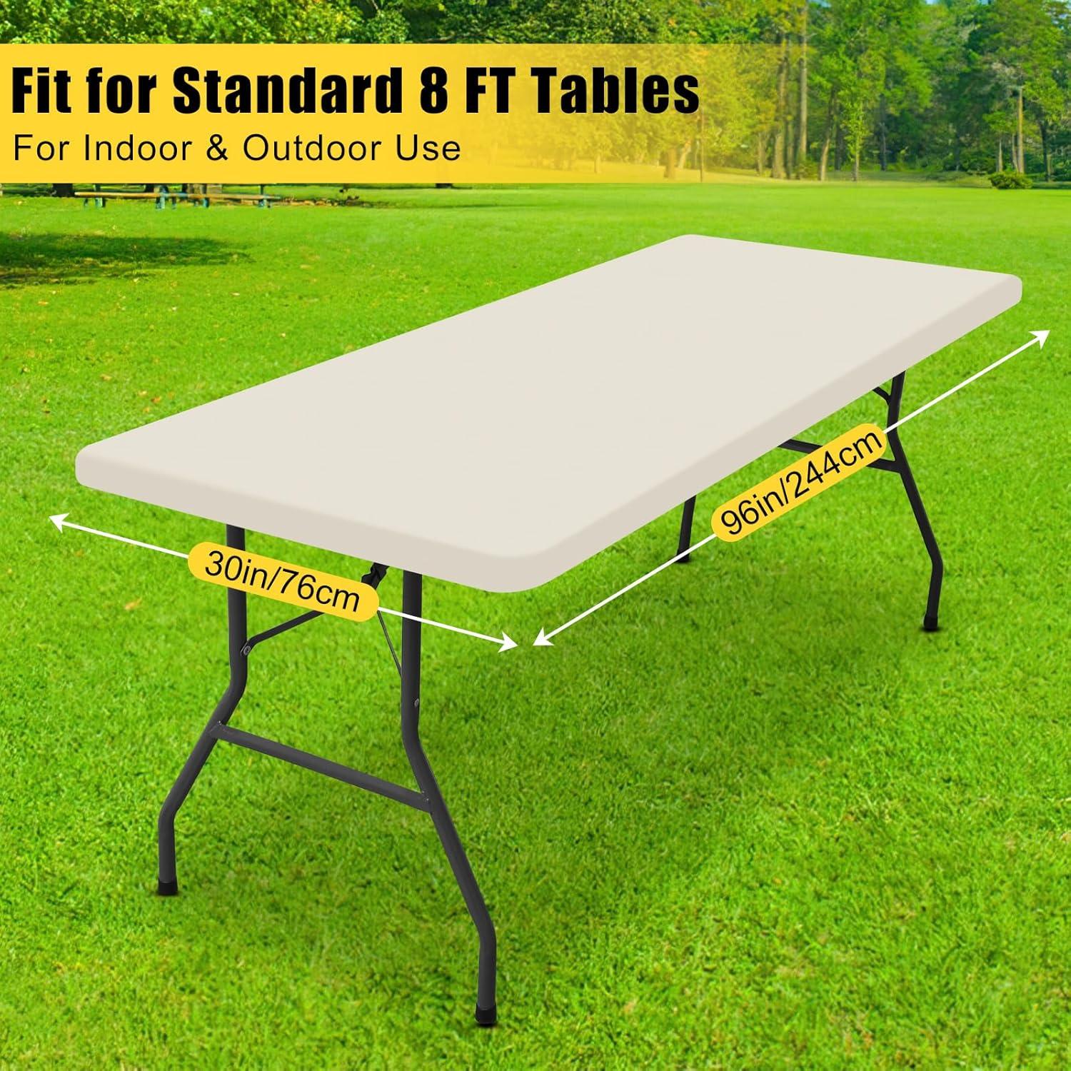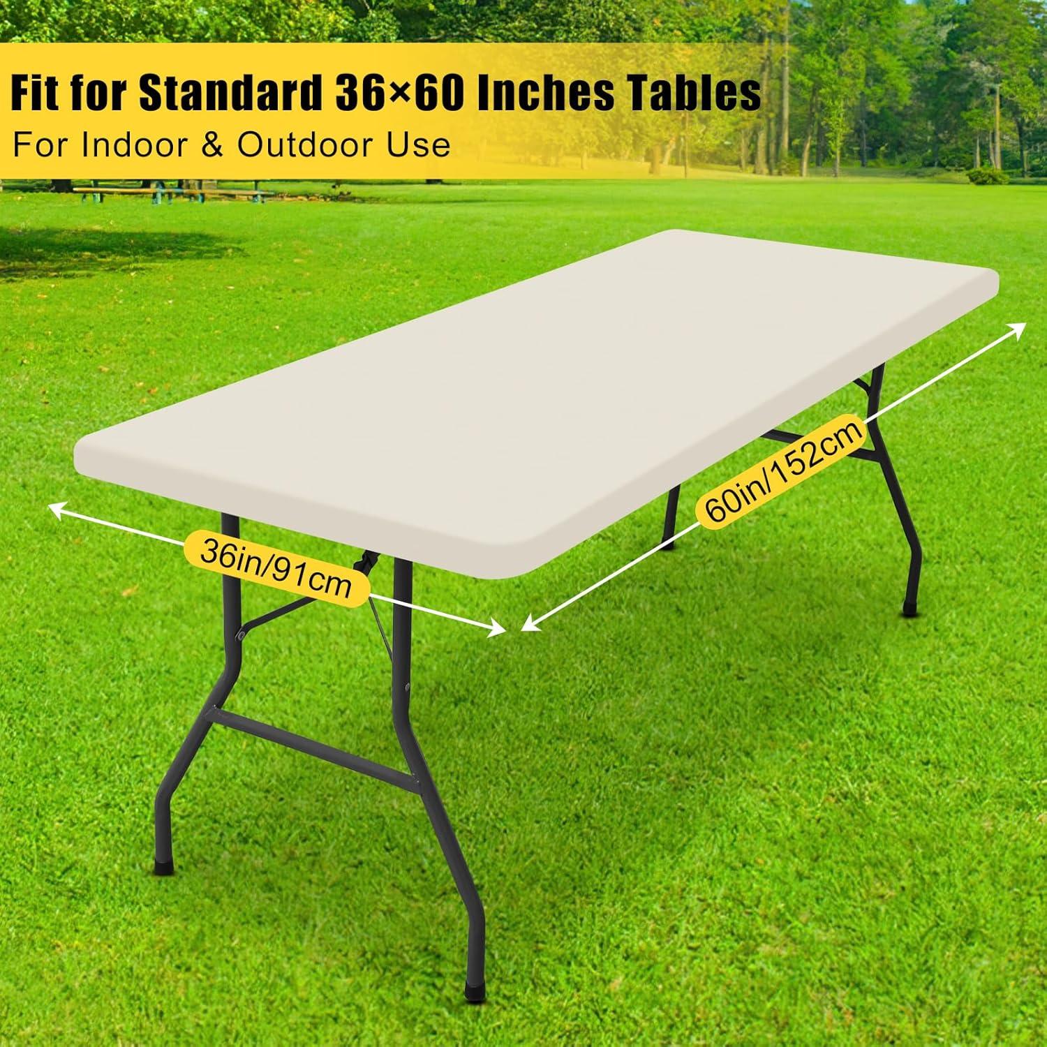 【Measurements】 The 6FT rectangle table cloth fits 30″x 72″ folding tables, which meets for 4-6 people use. Please be sure to accurately measure the size of the tabletop and the thickness of the table when purchasing.