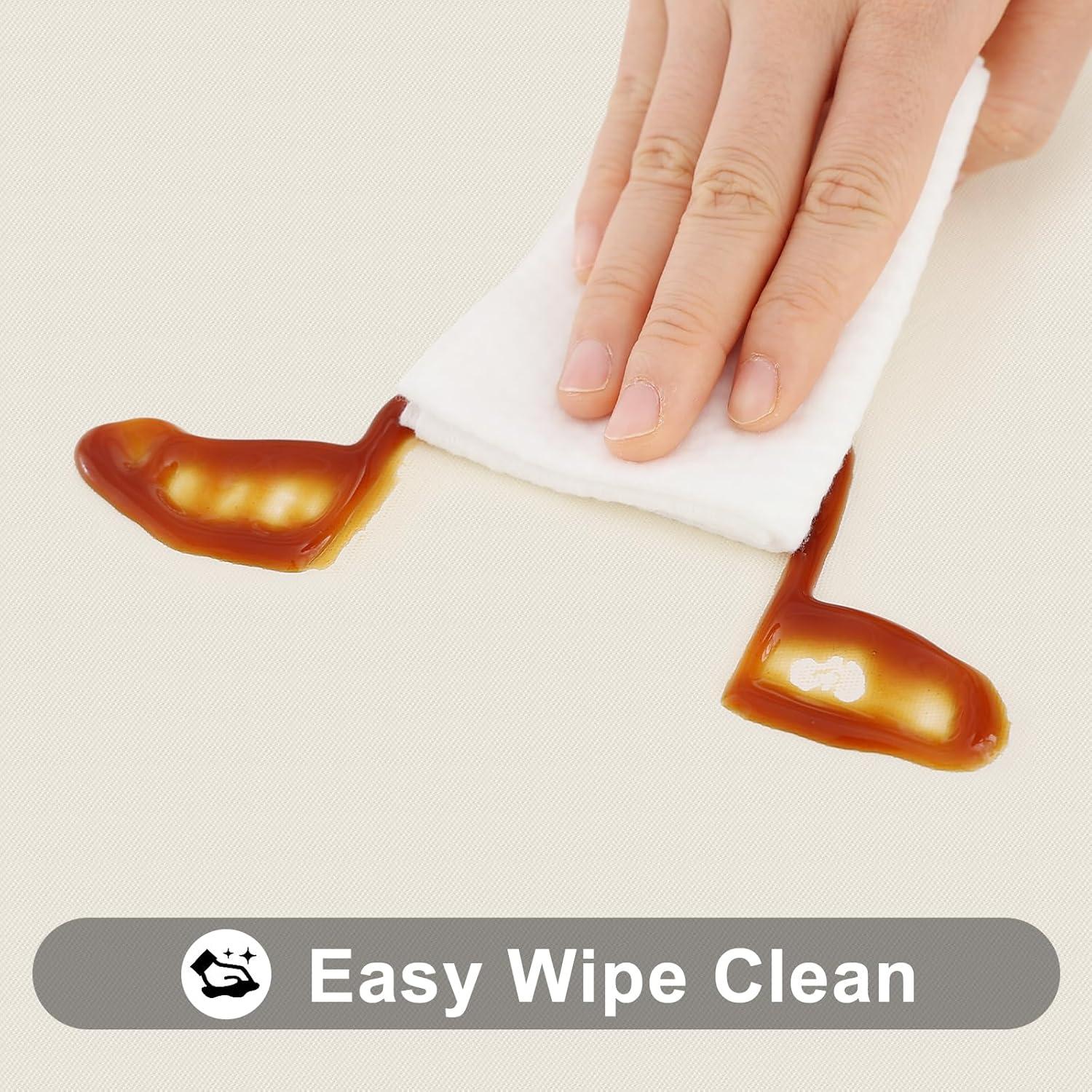 【Waterproof & Easy Care】 Featuring water proof vinyl material, our tablecloths can be waterproof, oil proof, milk and many other liquids seep in to tabletop, just use a rag or paper towel to easily wipe off the stains.
