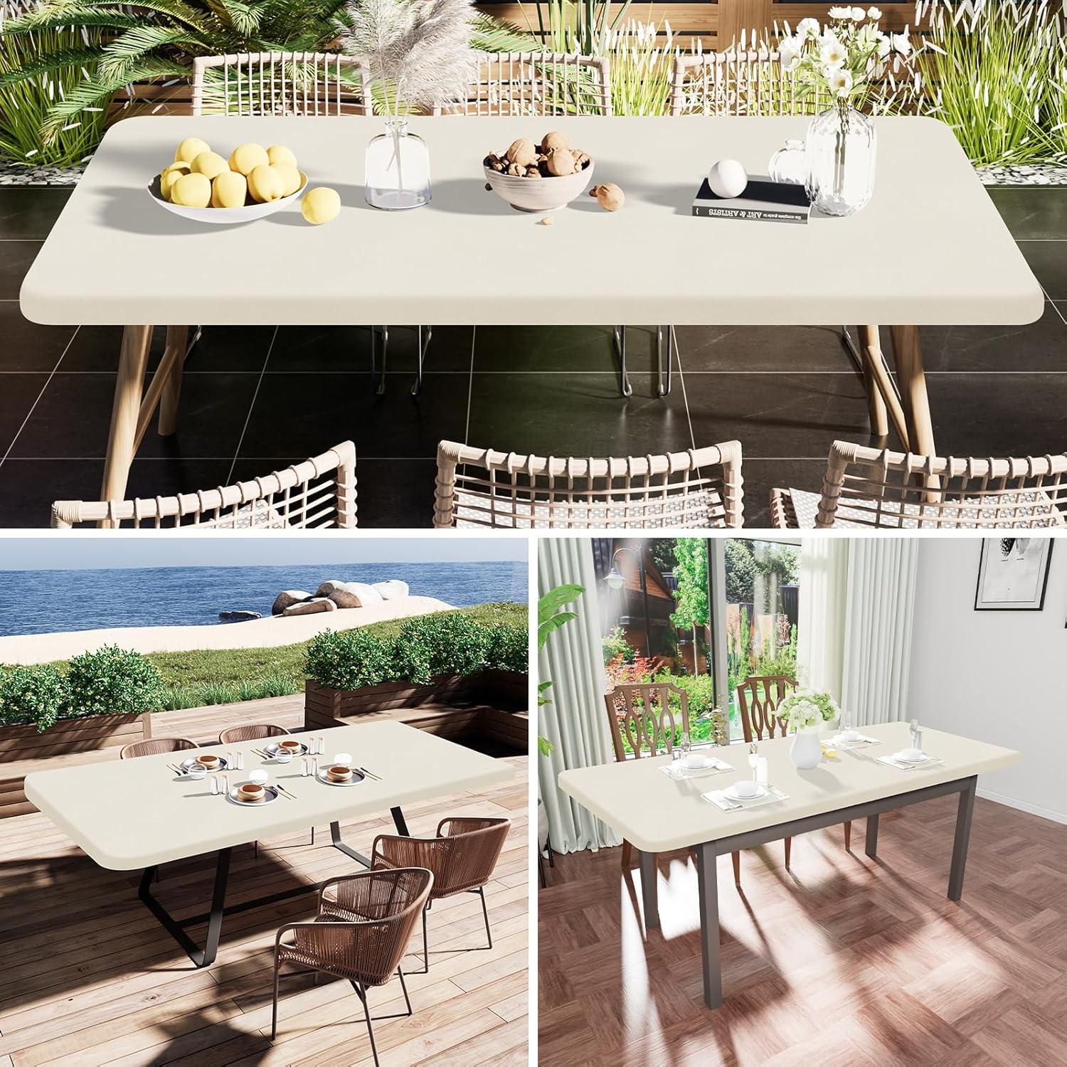 【Wind Proof & Non-Slip】 Our elastic edge design allows the table cover to wrap perfectly around the table without moving. When you use it outdoors, you don't need to worry about the table cloth being blown away by the wind, and you don't need to worry about children grabbing the tablecloth and making things slip off the table.