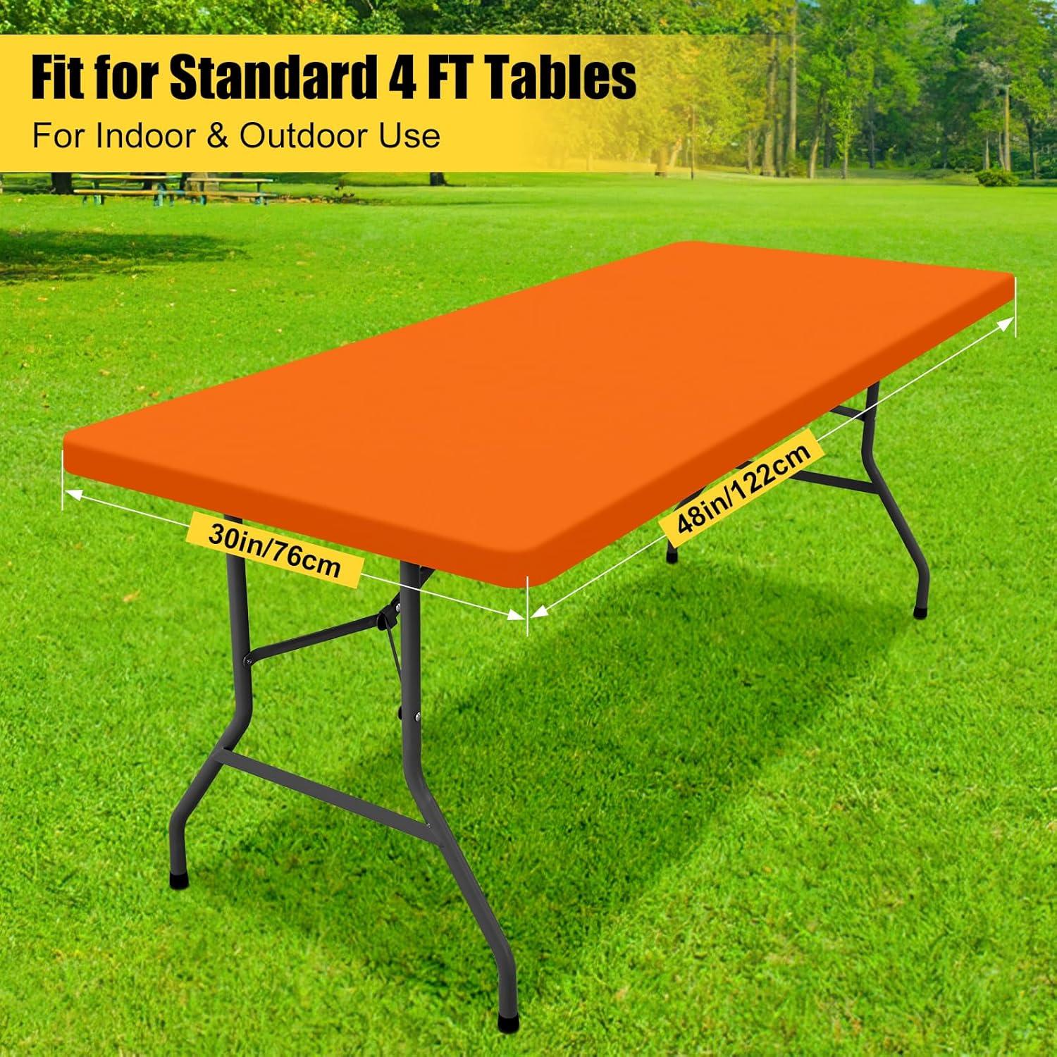 Smiry Rectangle Tablecloth, Elastic Fitted Flannel Backed Vinyl Tablecloths for 6ft Folding Tables, Waterproof Wipeable Table Covers for Indoor, Outdoor, Picnic and Camping (Black, 30″x72″)(Orange)
