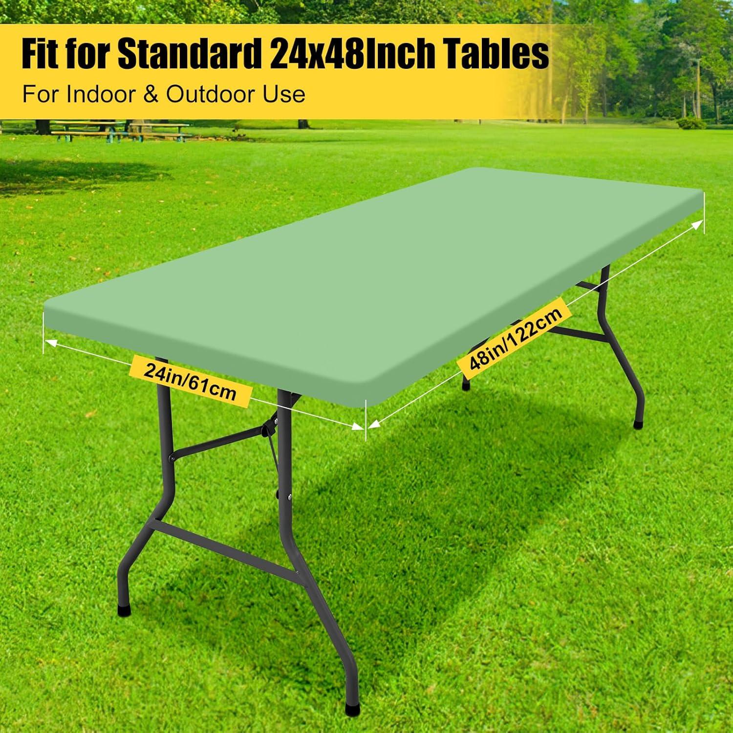 Smiry Rectangle Tablecloth, Elastic Fitted Flannel Backed Vinyl Tablecloths for 6ft Folding Tables, Waterproof Wipeable Table Covers for Indoor, Outdoor, Picnic and Camping (Black, 30"x72")(Sage Green)
