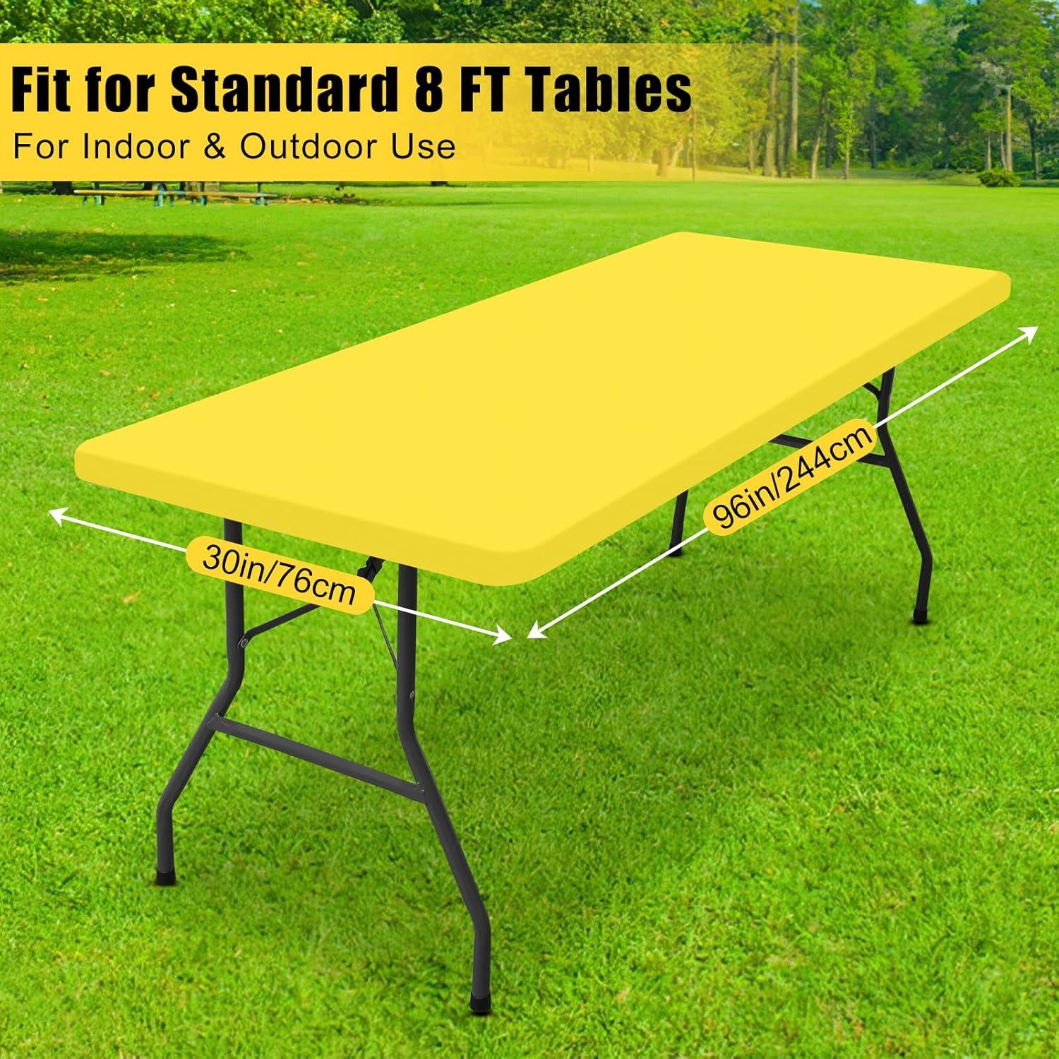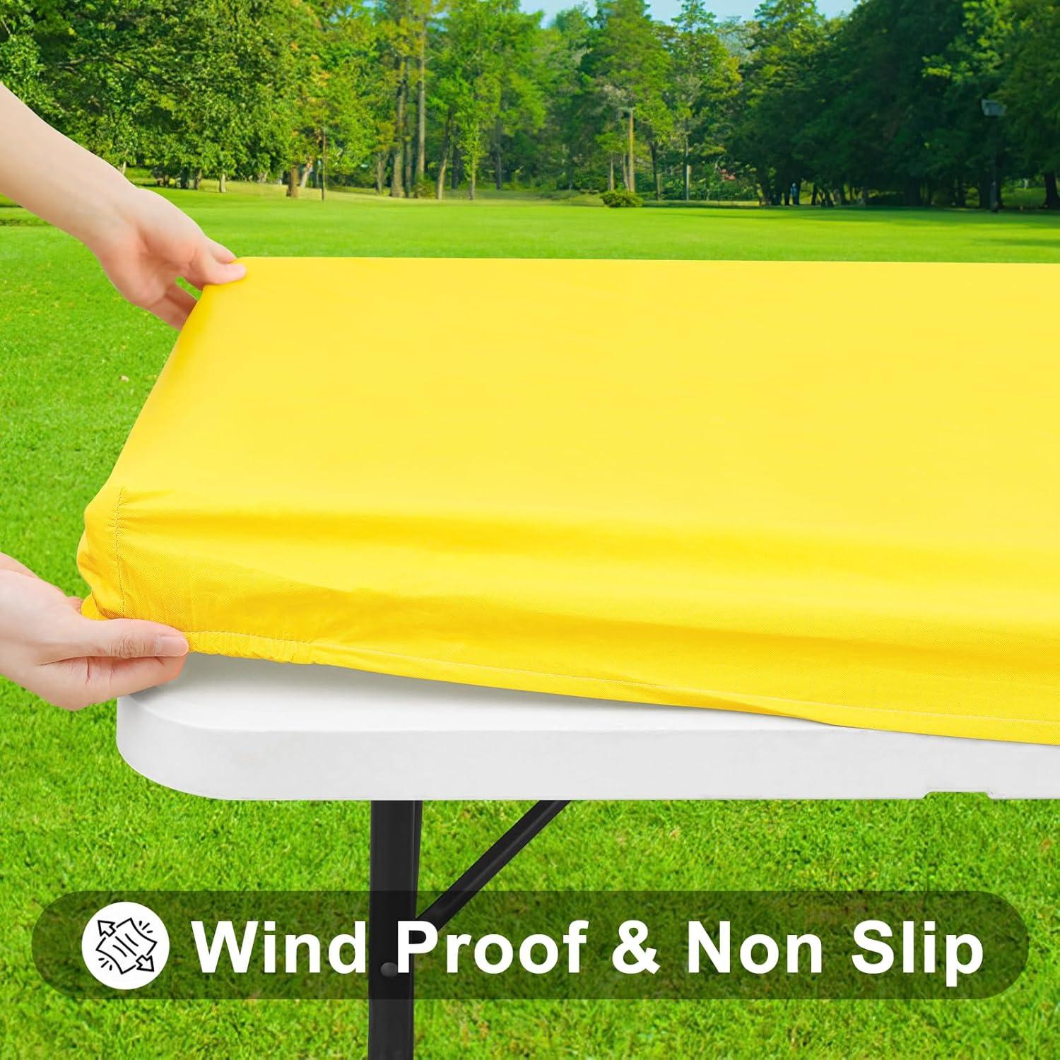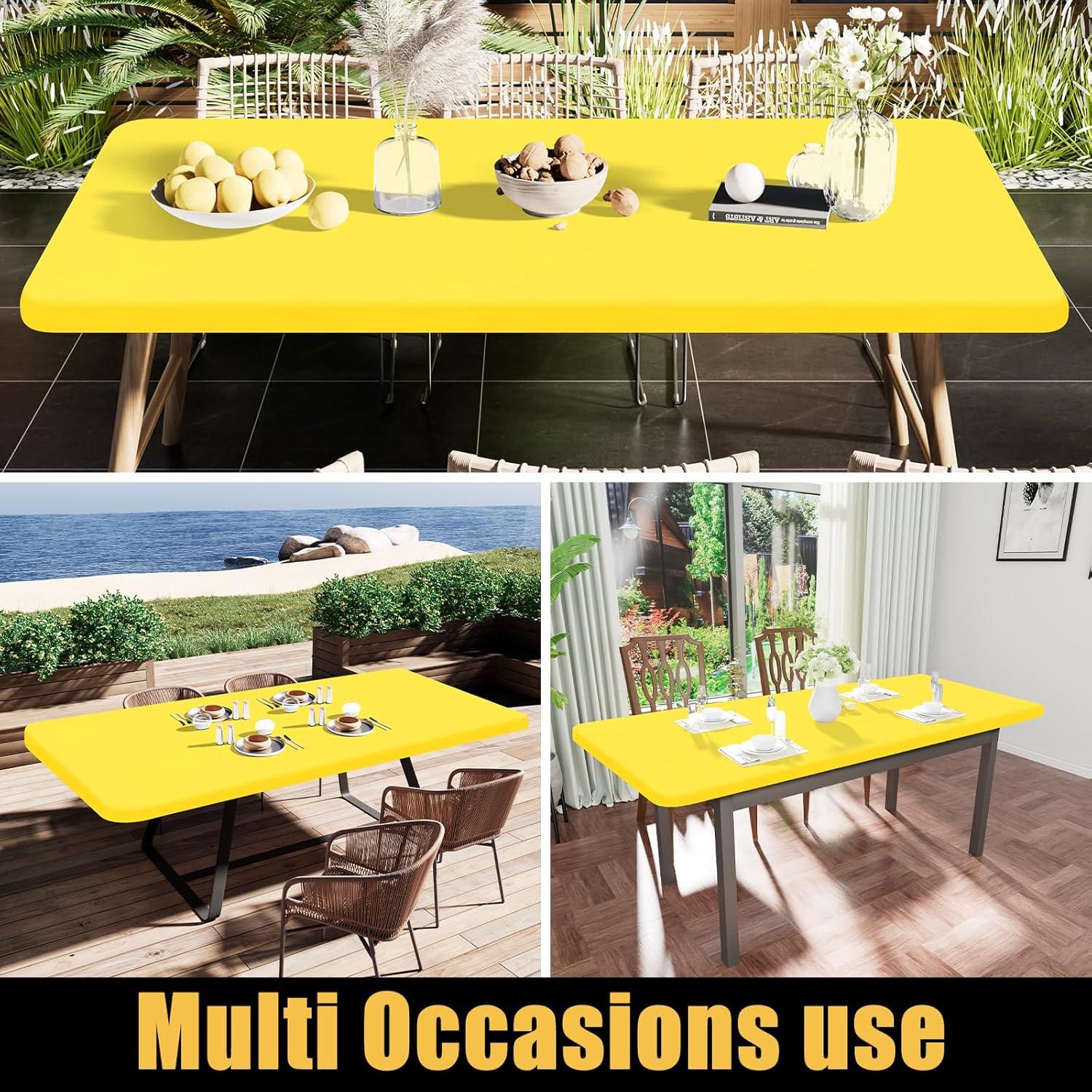 Smiry Rectangle Tablecloth, Elastic Fitted Flannel Backed Vinyl Tablecloths for 6ft Folding Tables, Waterproof Wipeable Table Covers for Indoor, Outdoor, Picnic and Camping (Black, 30"x72")(Yellow)
