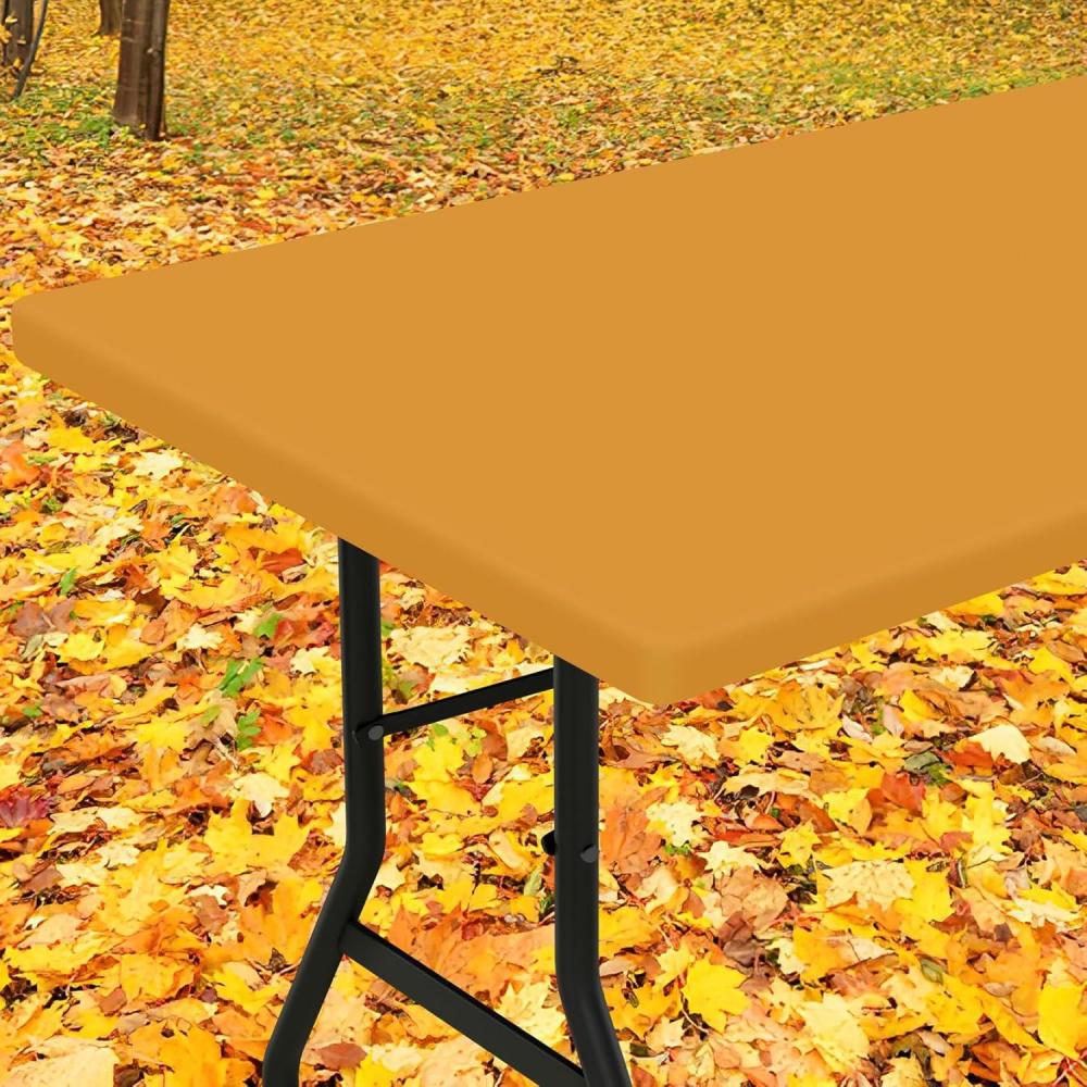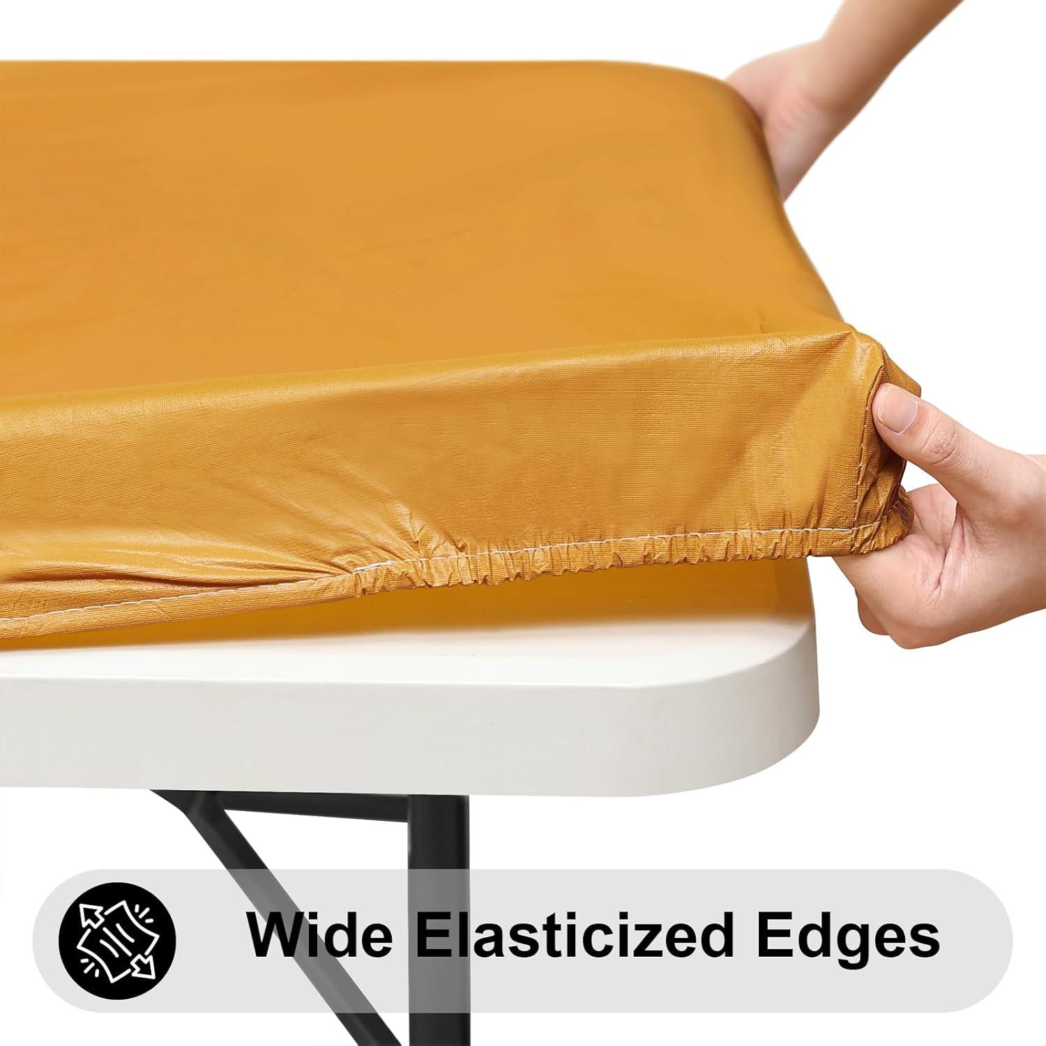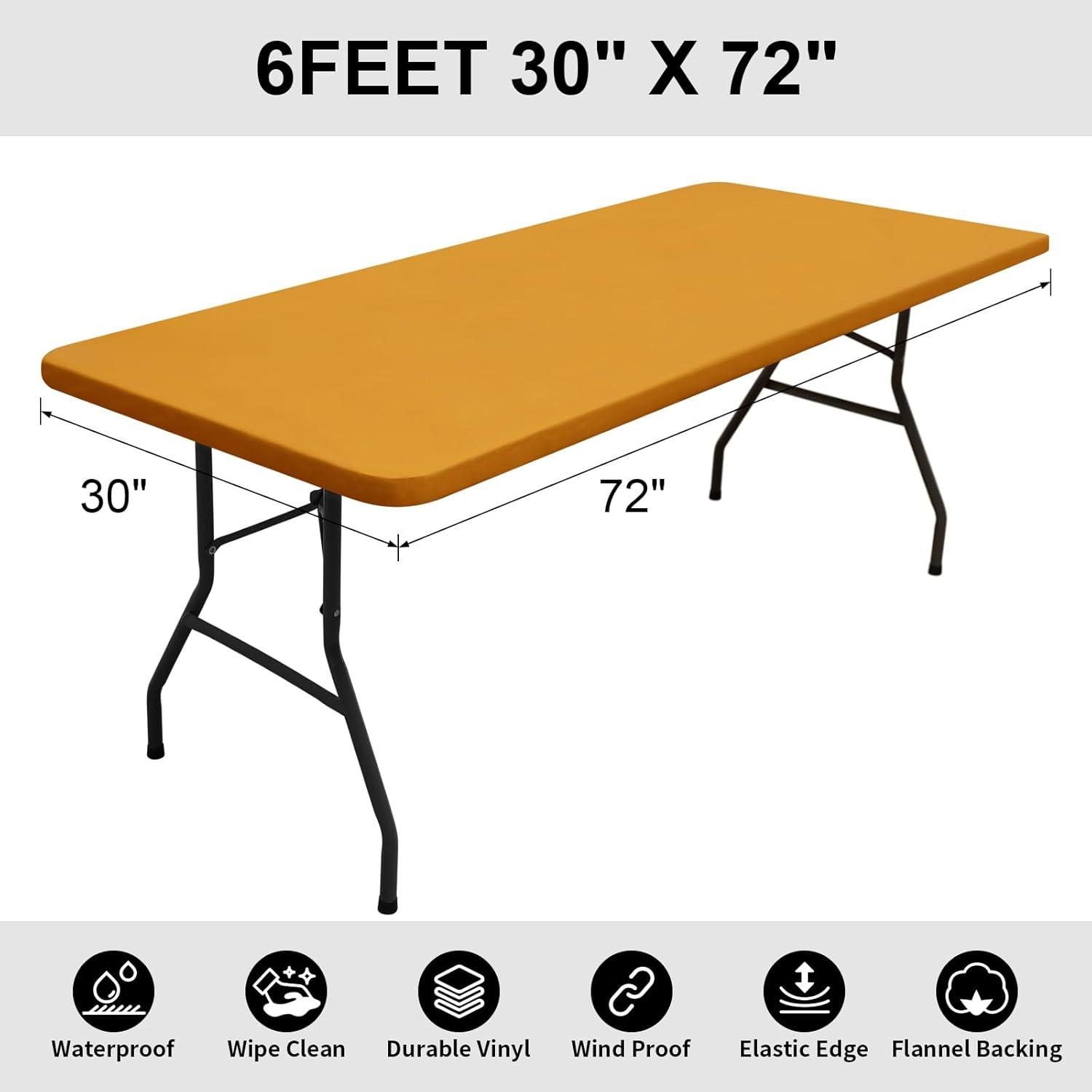Smiry Rectangle Tablecloth, Elastic Fitted Flannel Backed Vinyl Tablecloths for 6ft Folding Tables, Waterproof Wipeable Table Covers for Indoor, Outdoor, Picnic and Camping (Mustard Yellow, 30"x72")