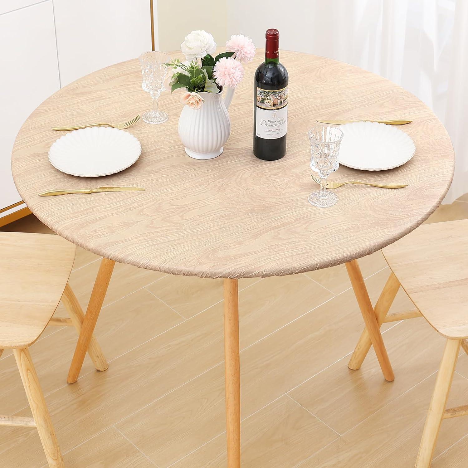 Smiry Round Picnic Tablecloth, Waterproof Elastic Fitted Table Covers for 36″ – 44″ Tables, Wipeable Flannel Backed Vinyl Tablecloths for Camping, Indoor, Outdoor, Beige