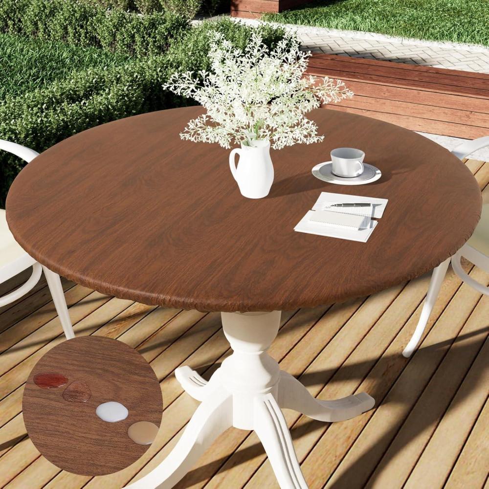 Smiry Round Picnic Tablecloth, Waterproof Elastic Fitted Table Covers for 36″ – 44″ Tables, Wipeable Flannel Backed Vinyl Tablecloths for Camping, Indoor, Outdoor, Brown