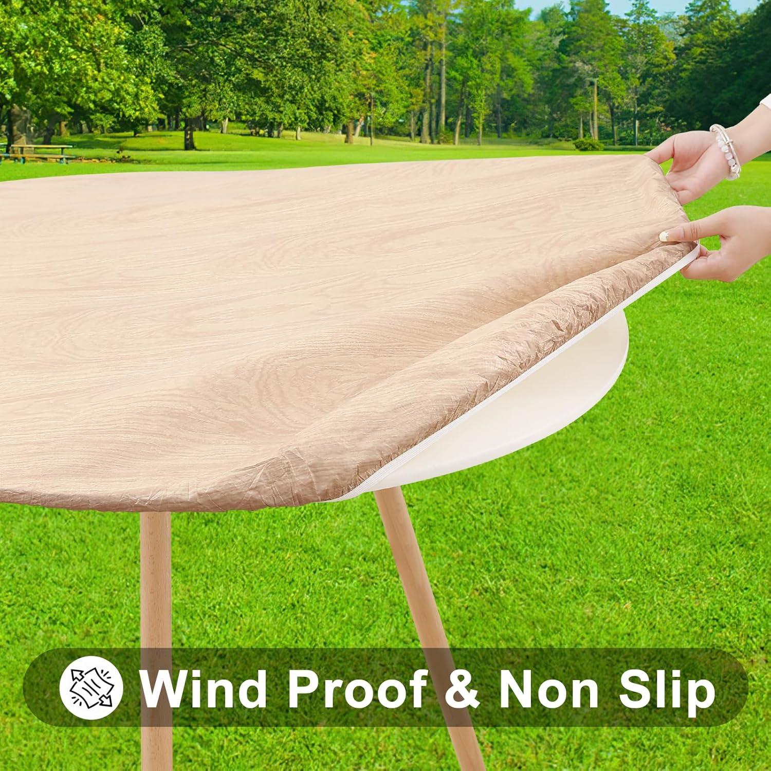 [Secure Fit with Windproof Design] Smiry's elastic-edged tablecloth ensures a snug fit, eliminating movement and the need for clips. Say goodbye to disruptions caused by wind or tugging, and savor your meals undisturbed.